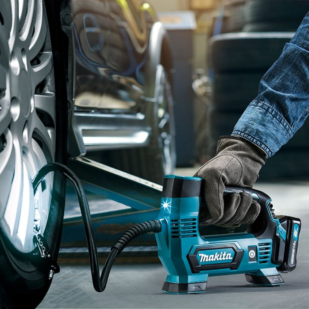 Conteúdo da embalagem: 1 Compressor de Ar Portátil Sem Fio 12V 121 PSI Com 4 Baterias MP100DZ-4BAT Makita