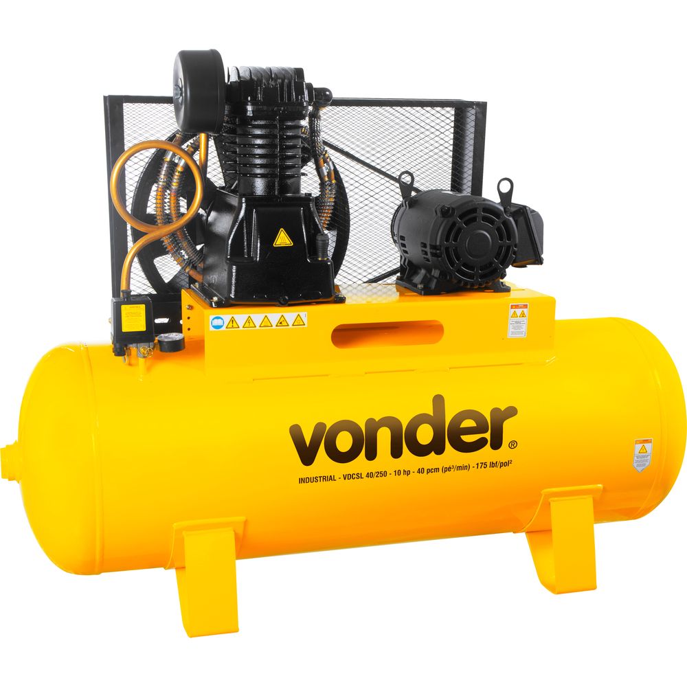 Para aplicações profissionais e industriais. Indicado para enchimento de pneus, limpeza de peças, serviços de pintura e acionamento de ferramentas pneumáticas em empresas, tais como: oficinas mecânicas, funilarias, pinturas, borracharias, fábricas de móveis, serralherias, centros automotivos, metalúrgicas, entre outras, respeitando a capacidade do equipamento. Óleo indicado para o motor: AW150. Uso obrigatório de chave de partida magnética. A chave de partida magnética não acompanha o compressor VONDER e deve ser adquirida separadamente. A não instalação de tal equipamento na rede elétrica é causa expressa de exclusão de garantia do compressor. Chaves indicadas: 220 V~: 78.51.295.607 / 380 V~: 78.51.295.730