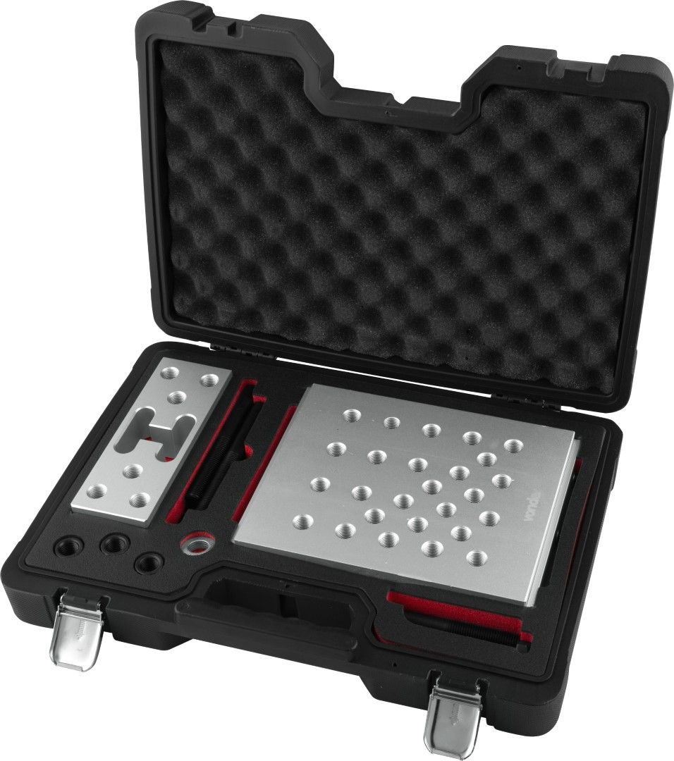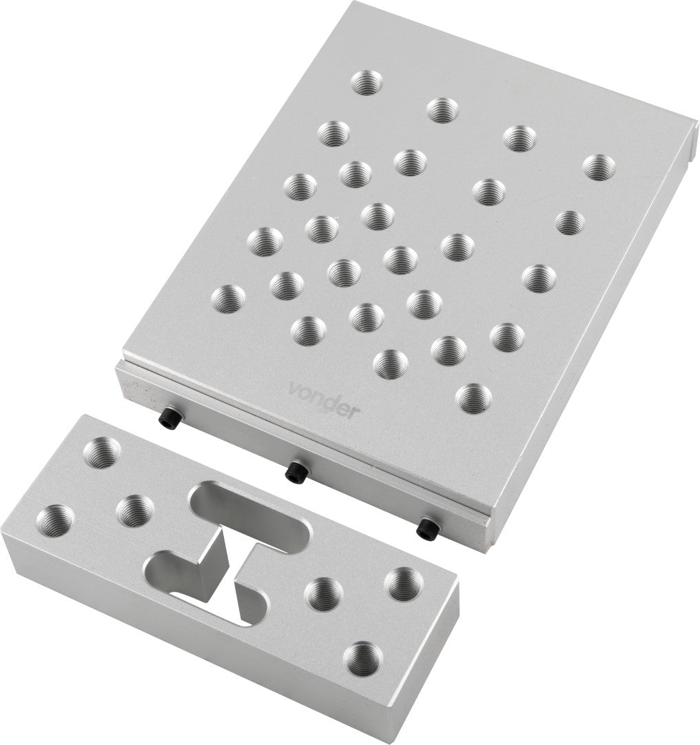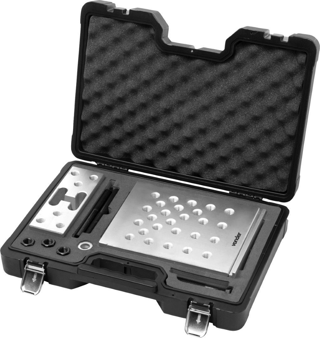 Conteúdo da embalagem: 1 Jogo composto por maleta plástica com 29 peças, sendo: 2 placas base, 2 placas laterais da base, 5 hastes, 1 parafuso sextavado, 3 porcas, 6 parafusos allen, 4 arruelas grandes, 6 arruelas pequenas.