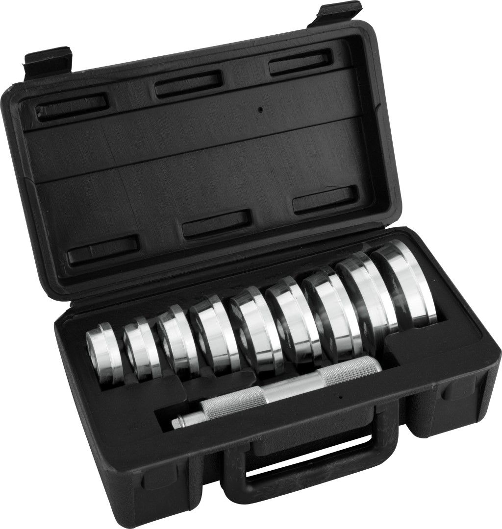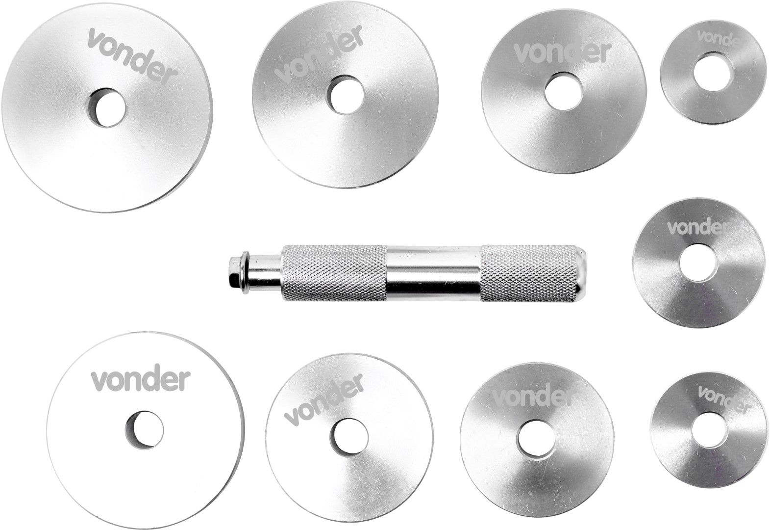 Conteúdo da embalagem: 1 Jogo composto por maleta plástica com 10 peças, sendo: 1 cabo e 9 adaptadores cônicos (39,5 mm; 44,5 mm; 50 mm; 59 mm; 63 mm; 65 mm; 72 mm; 76 mm e 81 mm).