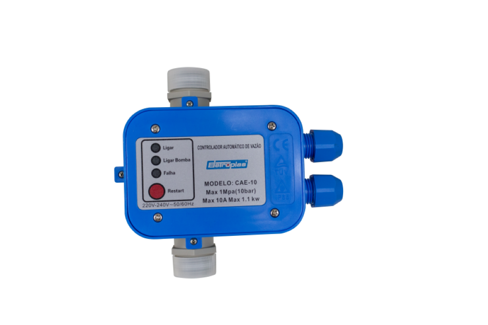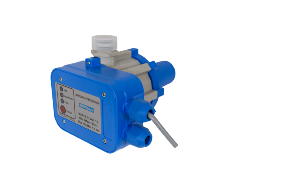 O CONTROLADOR DE PRESSÃO CAE-10 controla a partida e a parada automática da motobomba, ao abrir ou fechar um registro, torneira ou válvula de um determinado sistema, mantendo a pressão e o fluxo de água constante durante o período em que estiver em funcionamento. Pode ser utilizado tanto para sistema de água potável como não potável.