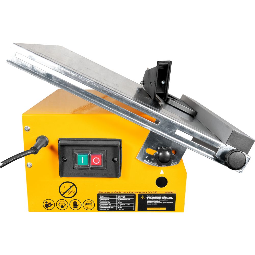 Prático e fácil de transportar, acompanha disco de corte diamantado. Possui a mesa com regulagem de ângulo para até 45°.