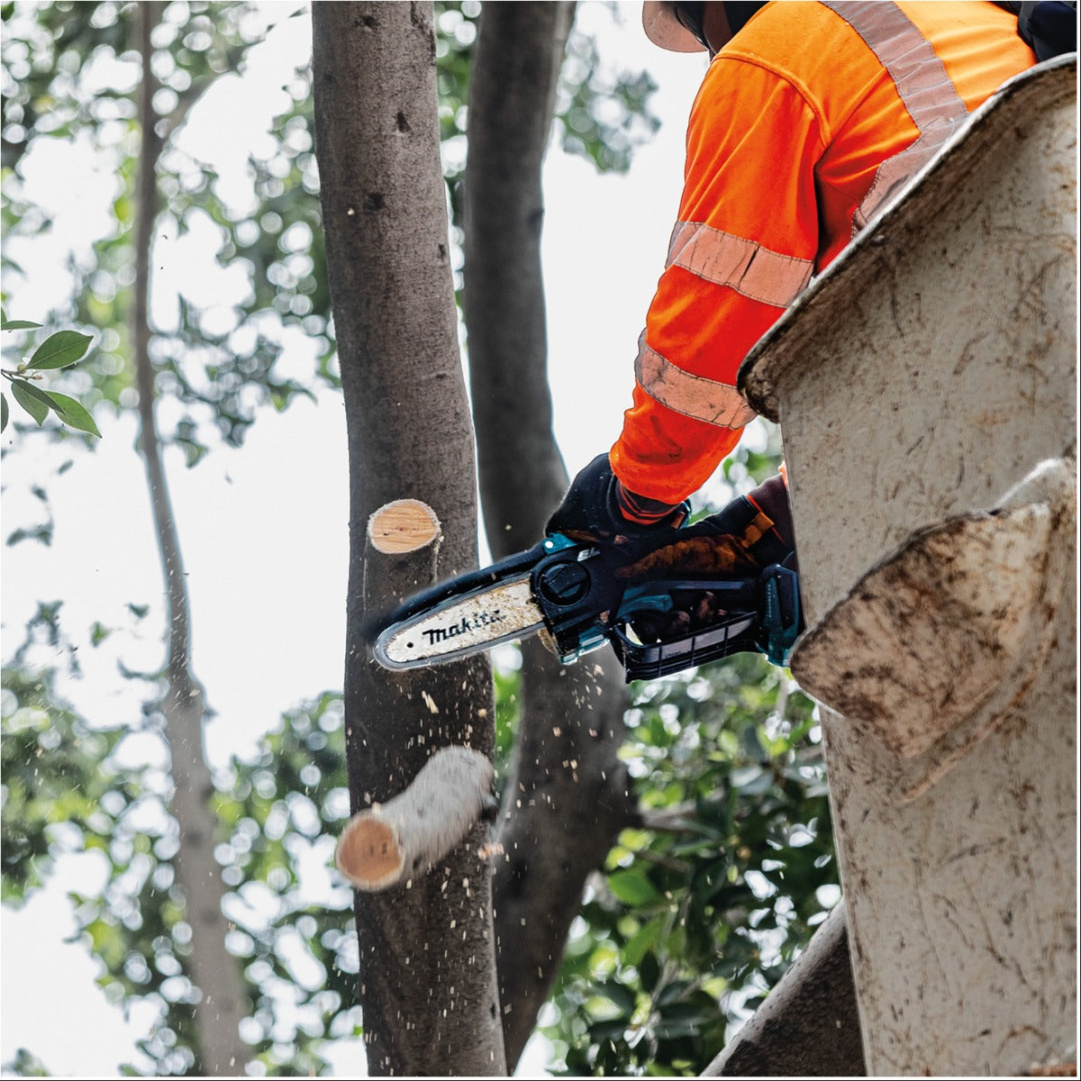 Cortador de Galho Makita 150 mm 18V DUC150SF01 é a escolha perfeita para quem busca praticidade e eficiência no corte de galhos, arbustos e na manutenção de jardins. Projetada para oferecer máxima segurança e conforto, essa ferramenta combina um design compacto com tecnologia de ponta, garantindo alto desempenho em diferentes aplicações. Ideal para jardineiros, paisagistas, prestadores de serviço e até mesmo para uso residencial, essa motosserra a bateria proporciona cortes precisos, livres de emissões e com manutenção reduzida. Equipada com um motor BL (Brushless) sem escovas de carvão, o Cortador de Galhos Makita oferece maior eficiência energética e uma vida útil prolongada, reduzindo o desgaste das peças internas. Com uma velocidade de corrente de 8 m/s, ela realiza cortes rápidos e suaves, aumentando a produtividade em qualquer tarefa. Além disso, o sistema de lubrificação automática da corrente garante um funcionamento contínuo e evita paradas inesperadas por falta de óleo. O visor transparente do nível de óleo facilita a checagem e garante a lubrificação adequada da corrente. Pensando na segurança do operador, a Makita projetou esta motosserra com um freio elétrico, que interrompe rapidamente o funcionamento da corrente em caso de necessidade. O protetor de mão traseiro e a proteção superior do sabre oferecem uma camada extra de proteção durante o uso. Outro grande diferencial é o sistema de troca e ajuste do conjunto de corte sem a necessidade de ferramentas, tornando a operação muito mais prática e ágil. Além disso, o botão trava acessível em ambos os lados permite um manuseio confortável para destros e canhotos. A tecnologia XPT (Extreme Protection Technology) torna esta mini motosserra resistente à poeira e à água, ideal para trabalhos em condições adversas. Seu design robusto e leve – pesando apenas 2,0 kg (com bateria) – proporciona excelente ergonomia e conforto durante longos períodos de uso.