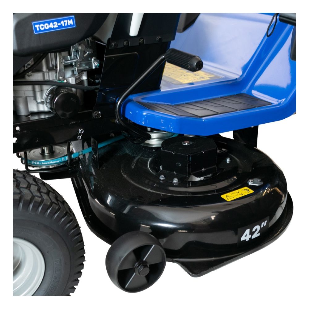 Seu deck de 42" garante agilidade no corte e permite o uso em áreas mais estreitas, proporcionando eficiência e versatilidade.