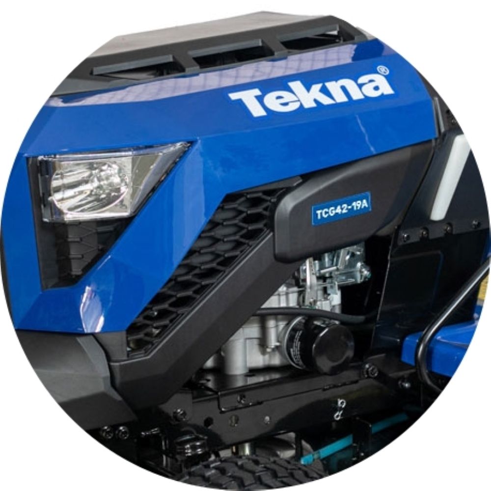 Cortador de grama, dirigível, TCG42-19A, Tekna, motor 4 tempos, 19,5 HP, câmbio automático, deck de 42", rodas anti-escalpo, conforto, qualidade, segurança, baixo consumo, autonomia, grande áreas verdes, estádios de futebol, parques, fazendas, chácaras.