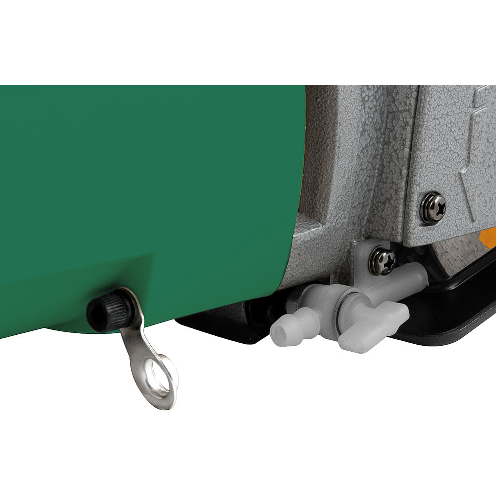 Trabalha com 5 discos diamantados em paralelo, agilizando o trabalho na abertura de canaletas e proporcionando maior precisão. Para o corte a seco, possui bocal para extração de pó para adaptação no aspirador, proporcionando menor incidência de poeira no ambiente e maior durabilidade dos discos diamantados. Para o corte a úmido, acompanha o kit de refrigeração com bomba elétrica (bivolt automático 100 V~ - 240 V~).
