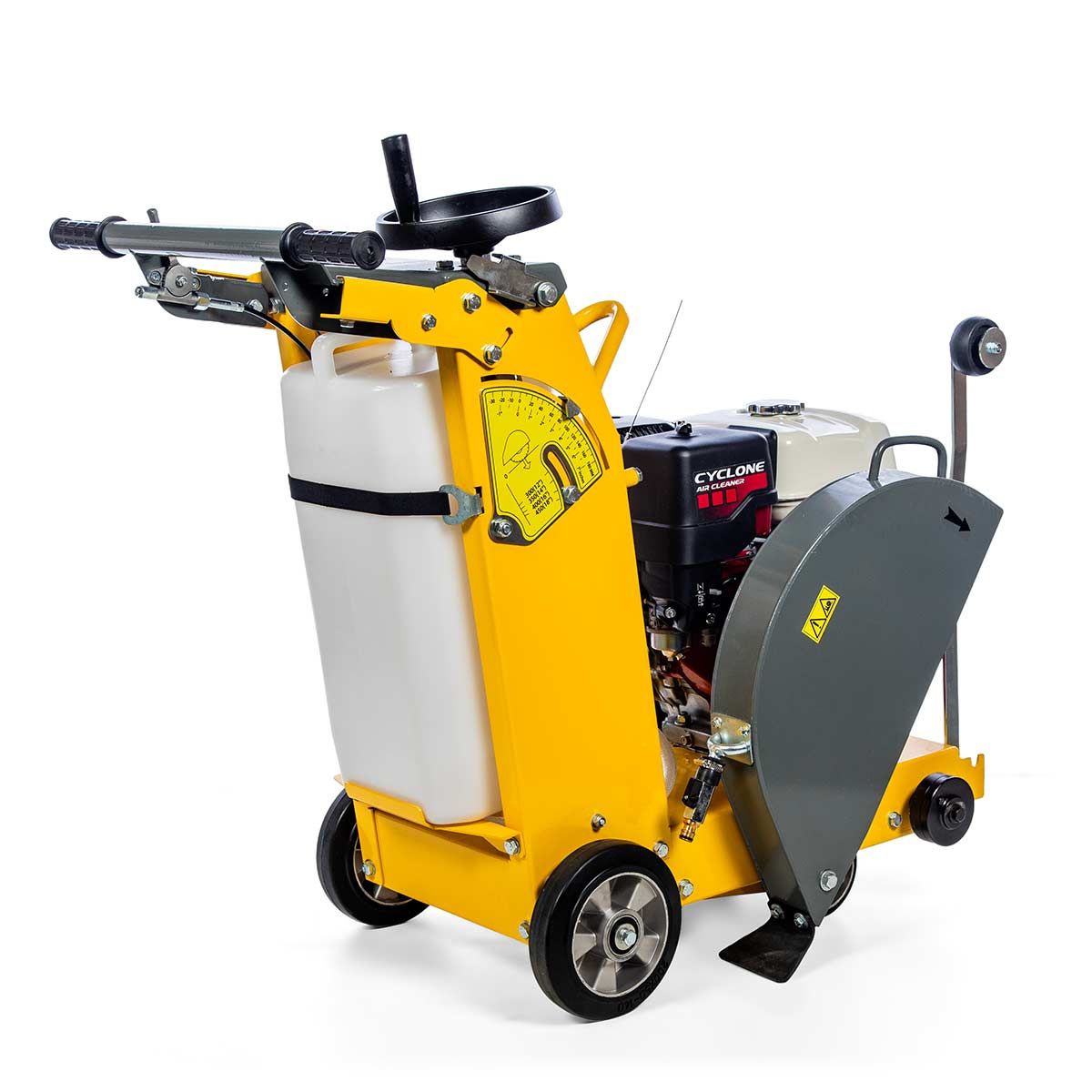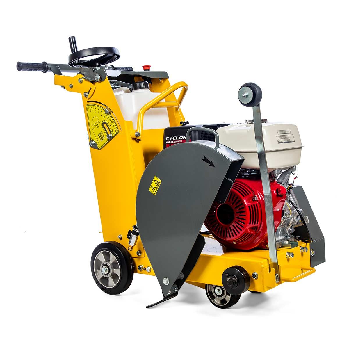 Disco de Corte 450mm: Com capacidade para um disco de 450mm, esta cortadora realiza cortes mais profundos, ideais para trabalhos que exigem precisão em pavimentação, manutenção de rodovias e grandes obras de construção.