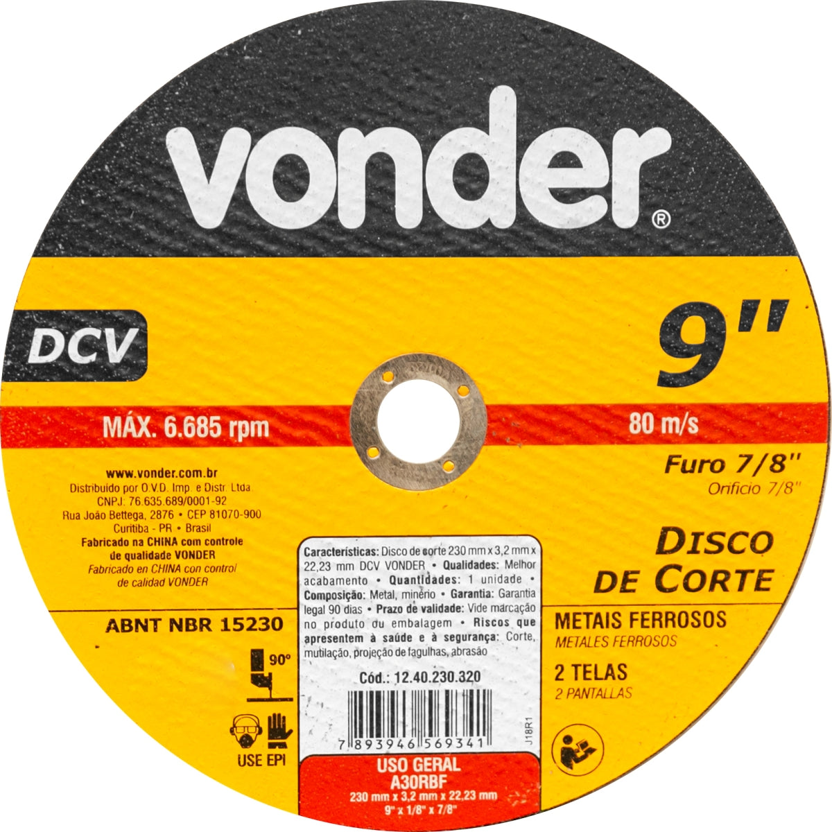 Disco de corte 230 mm x 3,2 mm x 22,23 mm DCV VONDERAplicações e dicas de uso: