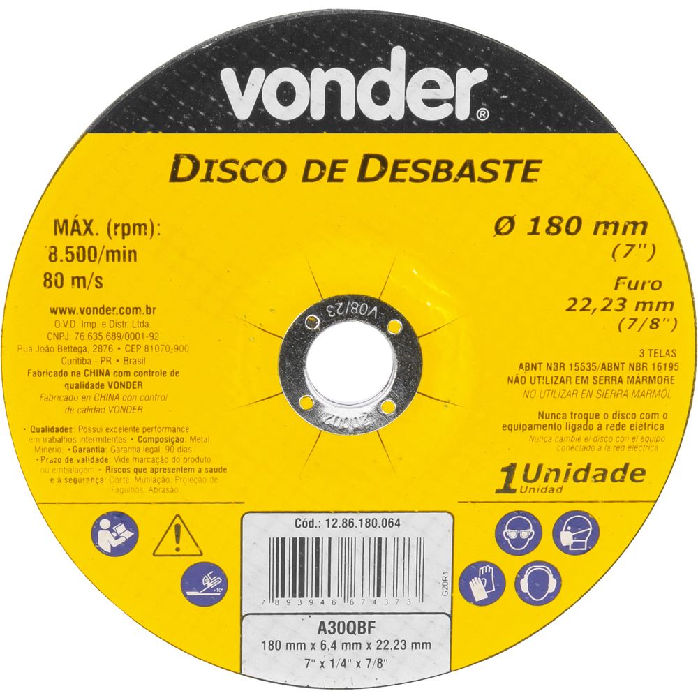 Diâmetro externo do disco de desbaste: 180 mm - 7"