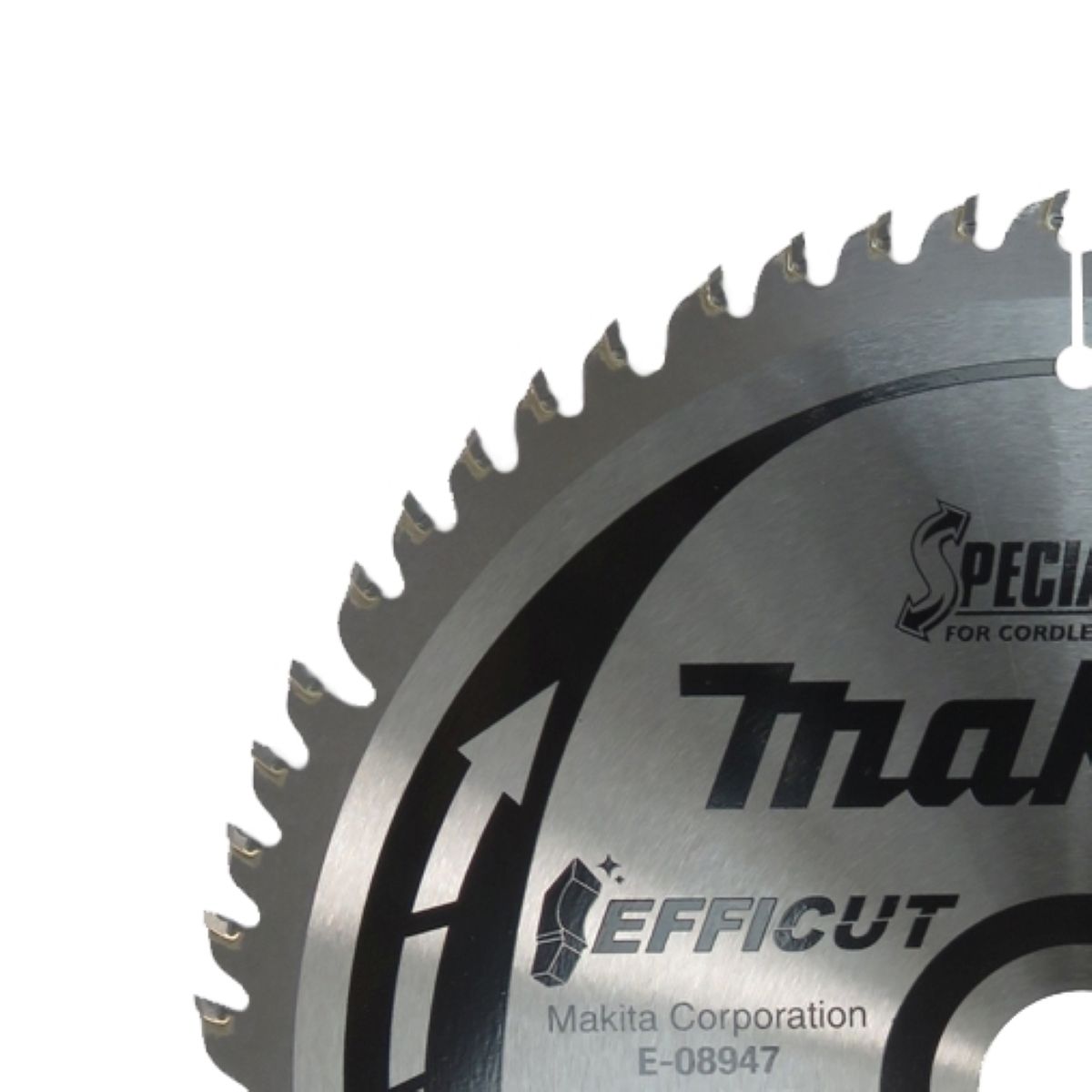 O Disco de Serra Makita Efficut foi desenvolvido para proporcionar cortes rápidos, suaves e com excelente acabamento. Sua geometria especial dos dentes, com curvatura frontal, ângulo superior afiado e base delgada, reduz o esforço da ferramenta e melhora a eficiência do corte. Ideal para cortes precisos em madeira e derivados, oferecendo alto desempenho e menor resistência ao corte.
