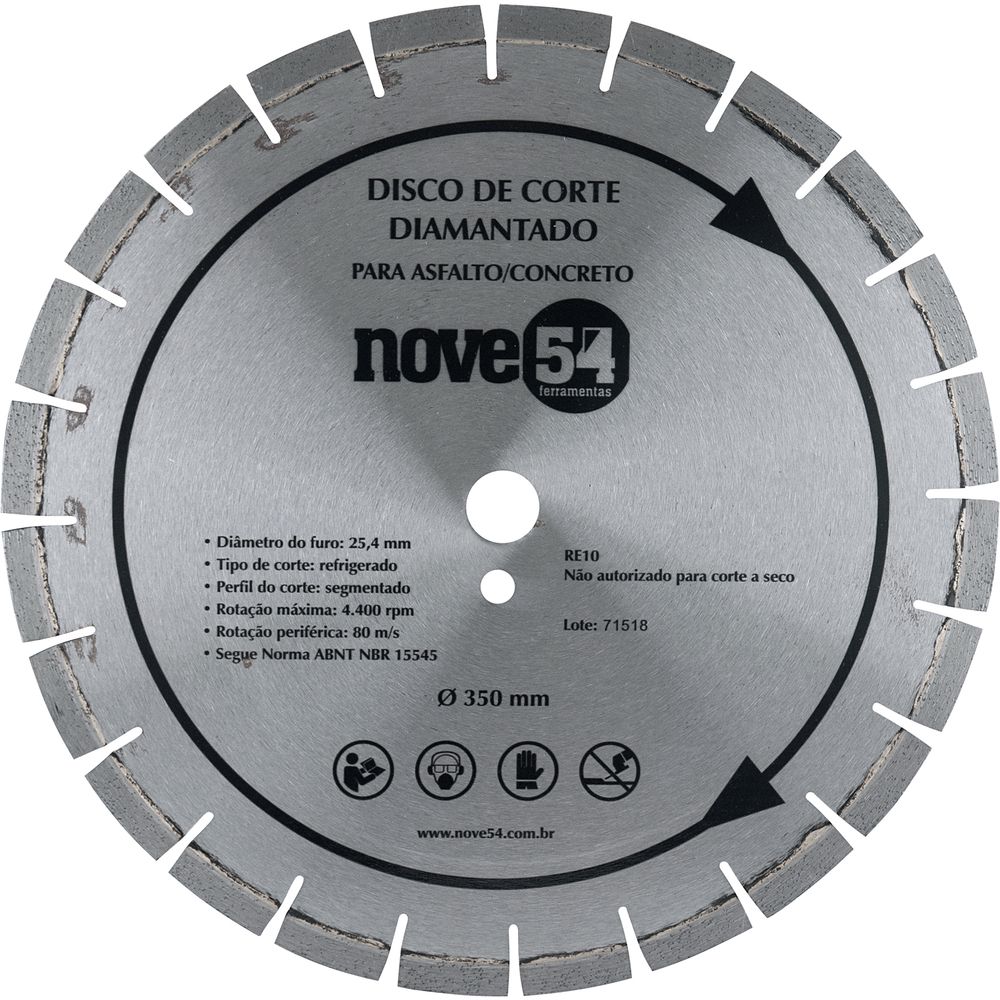 Diâmetro externo do disco de corte diamantado: 350 mm