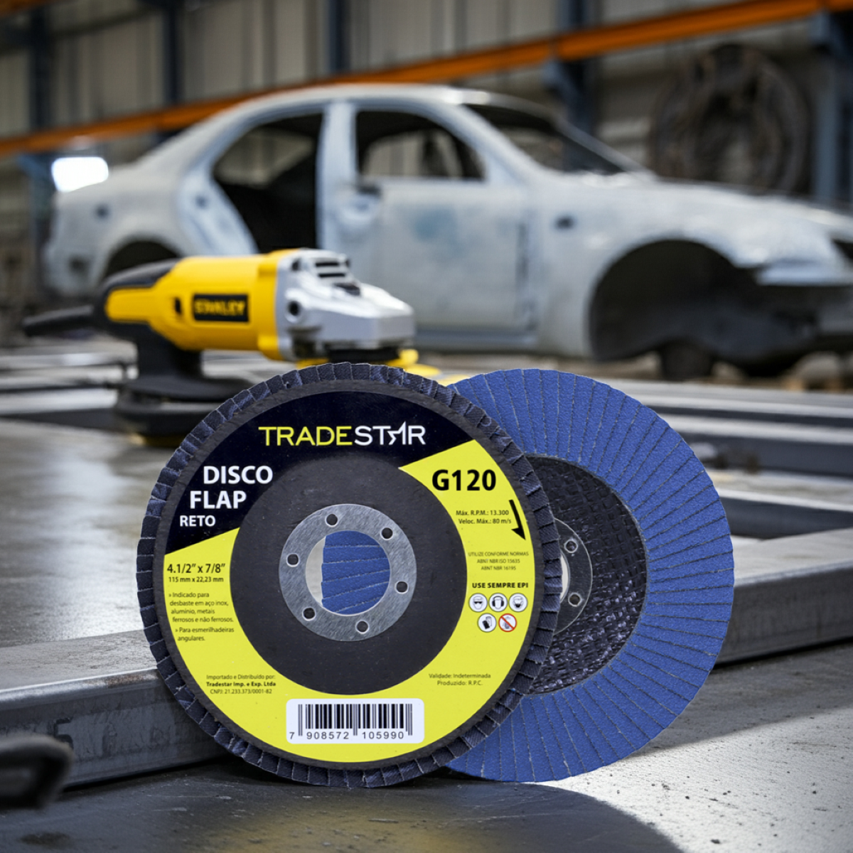 Ideal para oficinas, indústrias, serralherias, manutenção e projetos de construção, o disco de desbaste Tradestar combina praticidade, resistência e versatilidade. Além disso, seu design flap garante um acabamento mais uniforme em comparação aos discos planos convencionais, facilitando o lixamento em superfícies irregulares e curvas.