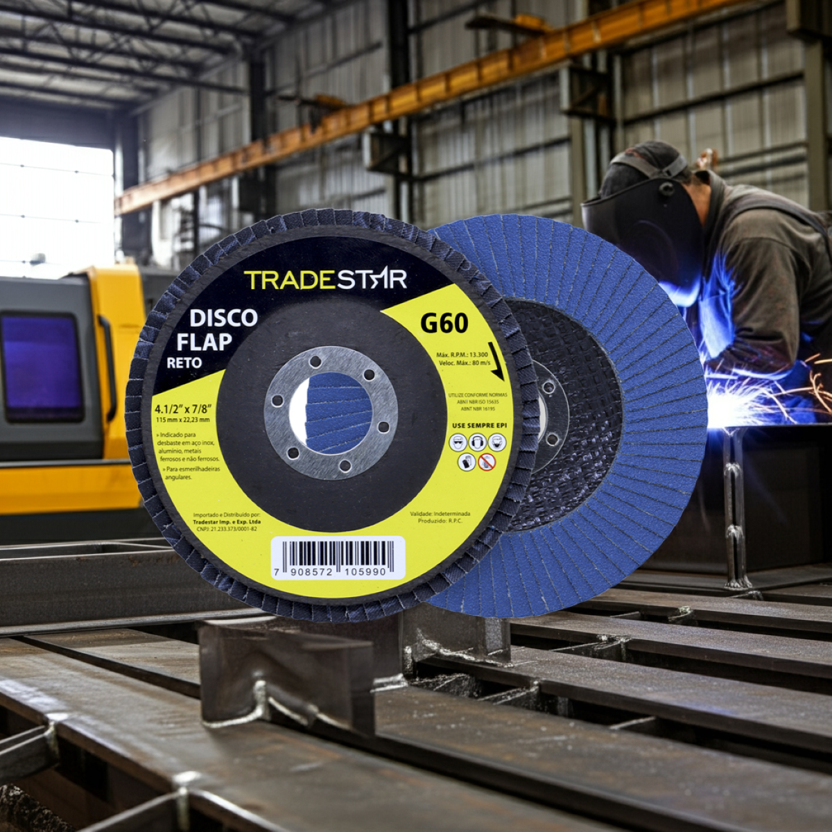 Ideal para oficinas, indústrias, serralherias, manutenção e projetos de construção, o disco de desbaste Tradestar combina praticidade, resistência e versatilidade. Além disso, seu design flap garante um acabamento mais uniforme em comparação aos discos planos convencionais, facilitando o lixamento em superfícies irregulares e curvas.