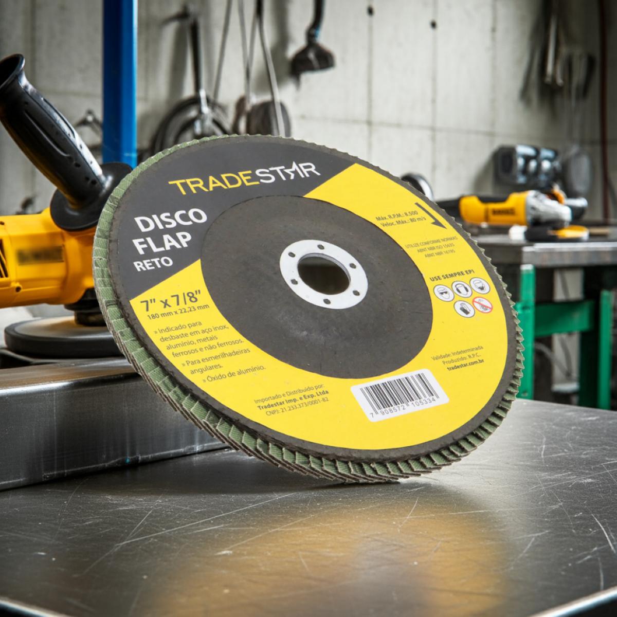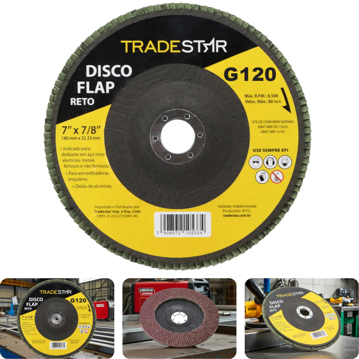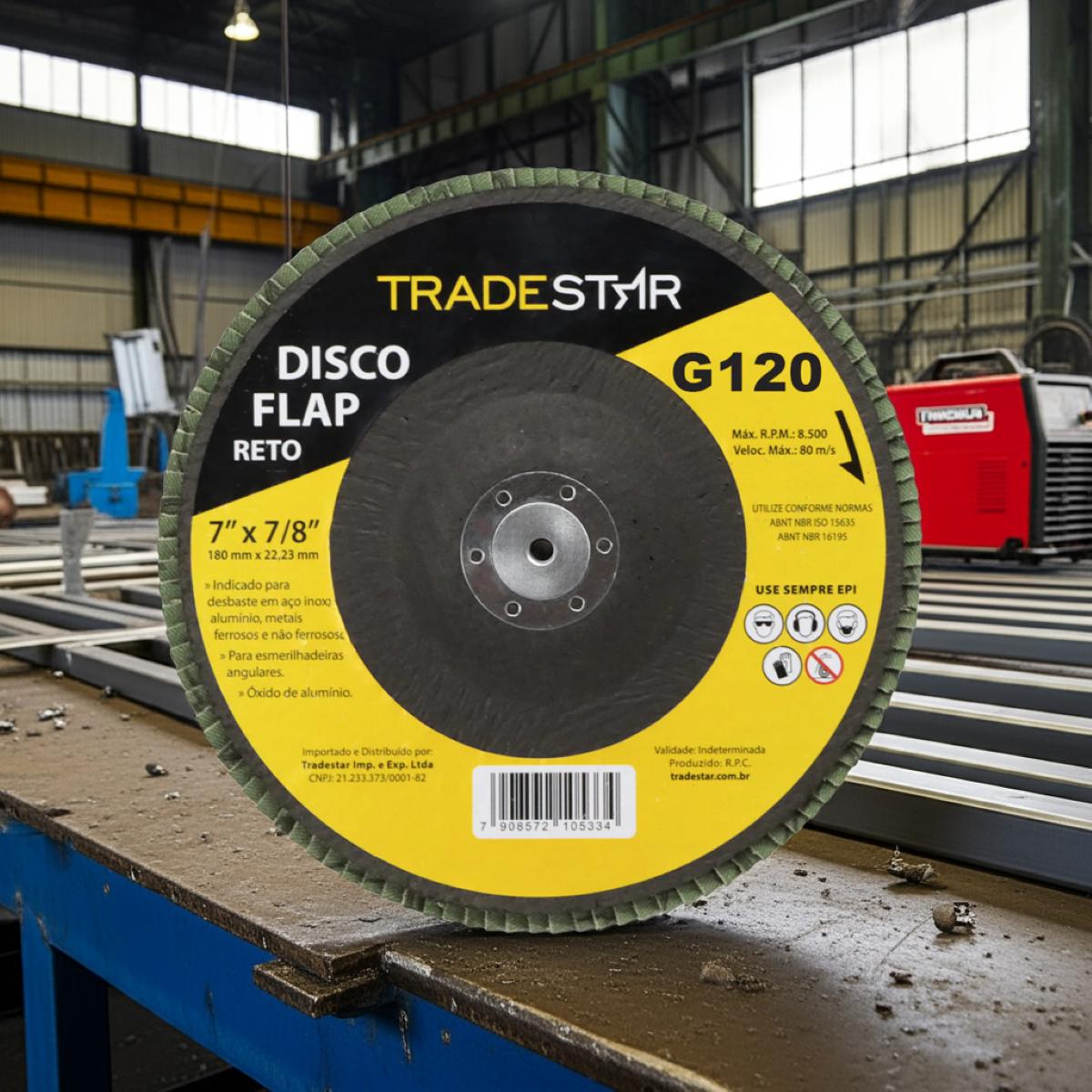 O Disco de Desbaste Reto Tradestar 180 mm G120 é uma ferramenta indispensável para quem busca qualidade, resistência e acabamento superior em trabalhos com metais. Desenvolvido com abrasivo de óxido de alumínio, esse disco flap reto combina desempenho consistente com alta durabilidade, sendo ideal tanto para profissionais da indústria quanto para usuários que realizam projetos de manutenção e reparo em oficinas ou em casa. Seu formato reto é especialmente projetado para oferecer maior estabilidade durante o uso, tornando-o perfeito para acabamentos em superfícies planas. Enquanto os discos cônicos são mais indicados para remoção rápida de material, o modelo reto garante precisão, uniformidade e acabamento refinado, atendendo às exigências de quem busca resultados de qualidade em trabalhos de desbaste e acabamento. É indicado para aplicações em aço carbono, inox, alumínio, metais ferrosos e não ferrosos, tornando-se uma solução versátil para diversos setores, como indústria naval, fundições, serralherias, construção civil e indústria automobilística.
