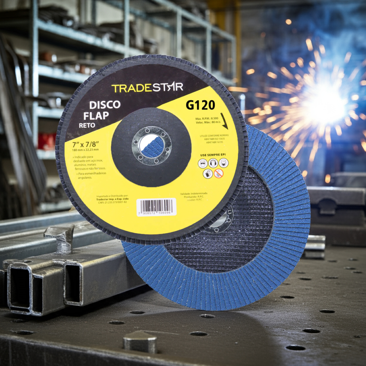 Disco Flap 180 mm G120 Fibra Reto Azul Aço e Inox Tradestar