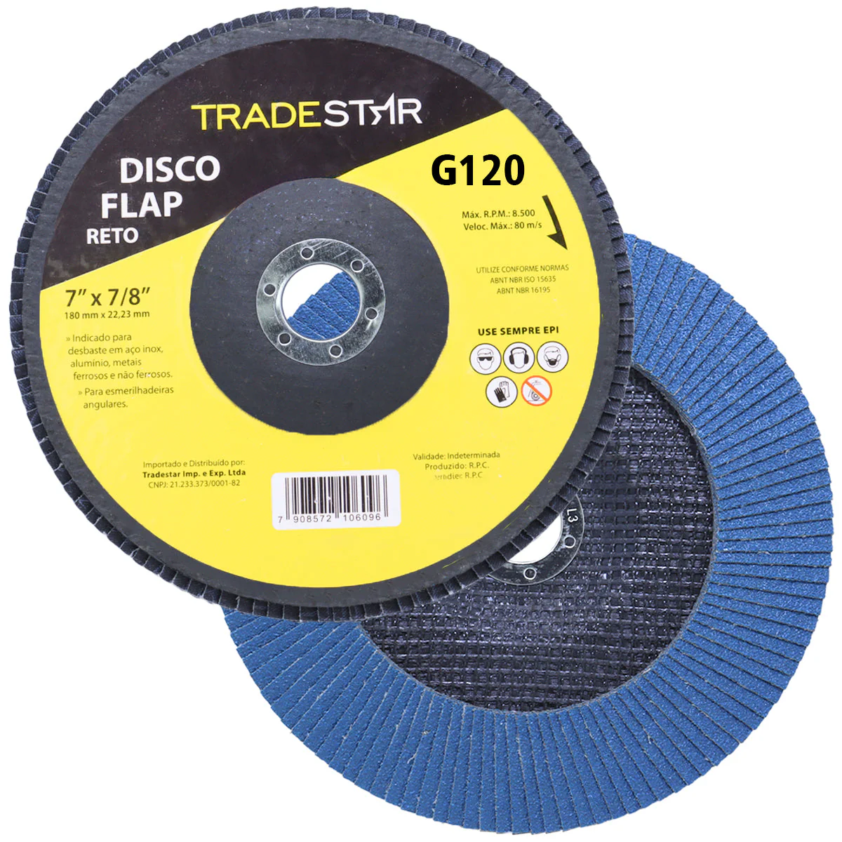 Seja no ambiente profissional ou em projetos pessoais, o Disco Flap Tradestar 180 mm G120 Fibra Reto Azul Aço e Inox é sinônimo de eficiência e acabamento de qualidade, representando uma excelente relação custo-benefício para quem busca ferramentas abrasivas confiáveis.