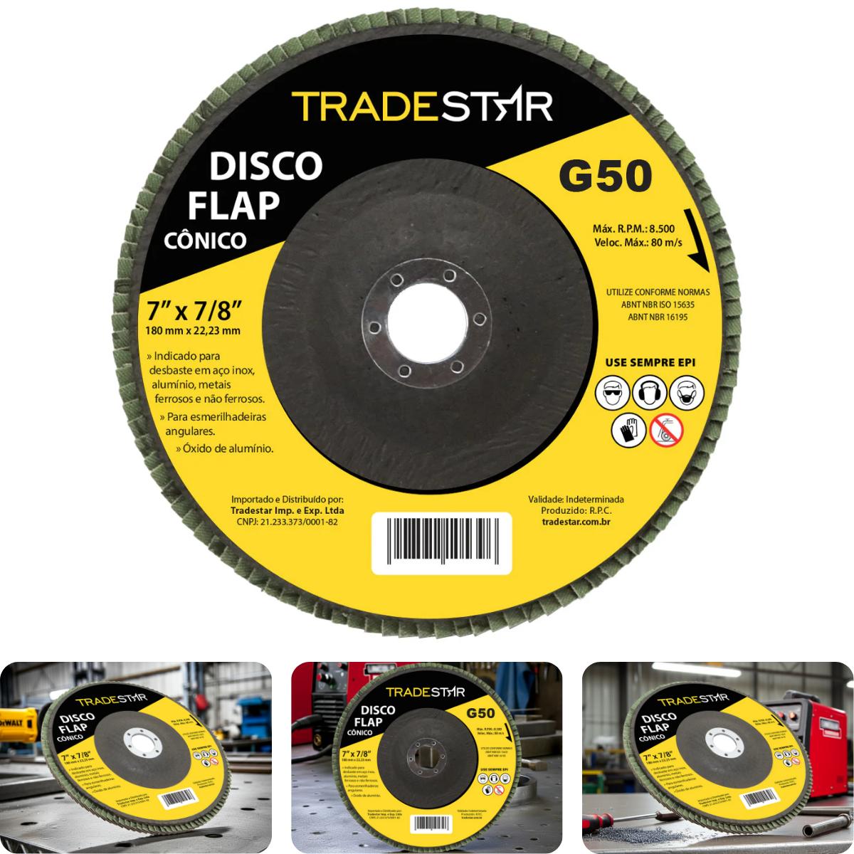 - 1 Flap Disc 180 mm G50 Fibra Conico Aço Tradestar