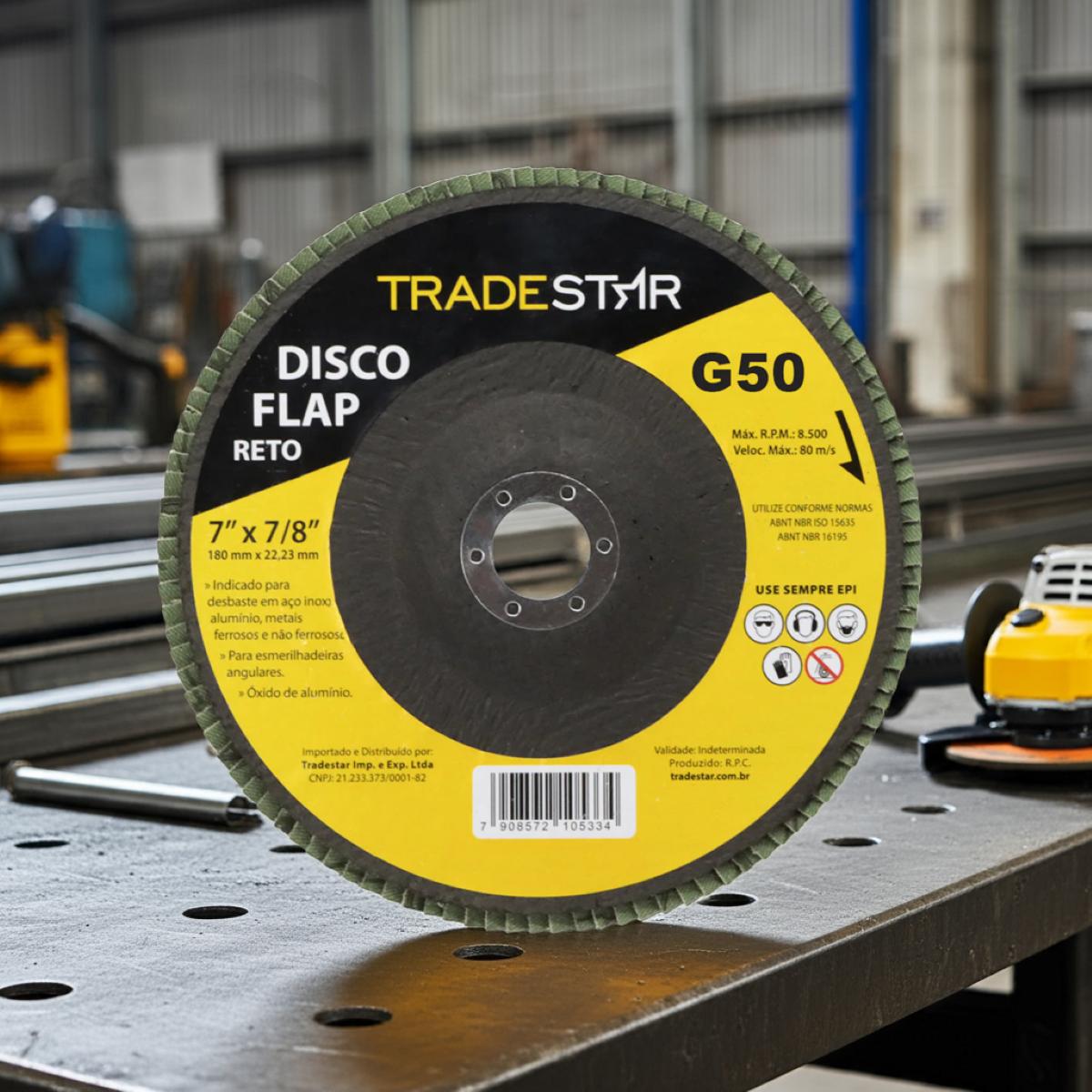 O Disco de Desbaste Reto Tradestar 180 mm G50 é uma ferramenta indispensável para quem busca qualidade, resistência e acabamento superior em trabalhos com metais. Desenvolvido com abrasivo de óxido de alumínio, esse disco flap reto combina desempenho consistente com alta durabilidade, sendo ideal tanto para profissionais da indústria quanto para usuários que realizam projetos de manutenção e reparo em oficinas ou em casa. Seu formato reto é especialmente projetado para oferecer maior estabilidade durante o uso, tornando-o perfeito para acabamentos em superfícies planas. Enquanto os discos cônicos são mais indicados para remoção rápida de material, o modelo reto garante precisão, uniformidade e acabamento refinado, atendendo às exigências de quem busca resultados de qualidade em trabalhos de desbaste e acabamento. É indicado para aplicações em aço carbono, inox, alumínio, metais ferrosos e não ferrosos, tornando-se uma solução versátil para diversos setores, como indústria naval, fundições, serralherias, construção civil e indústria automobilística.