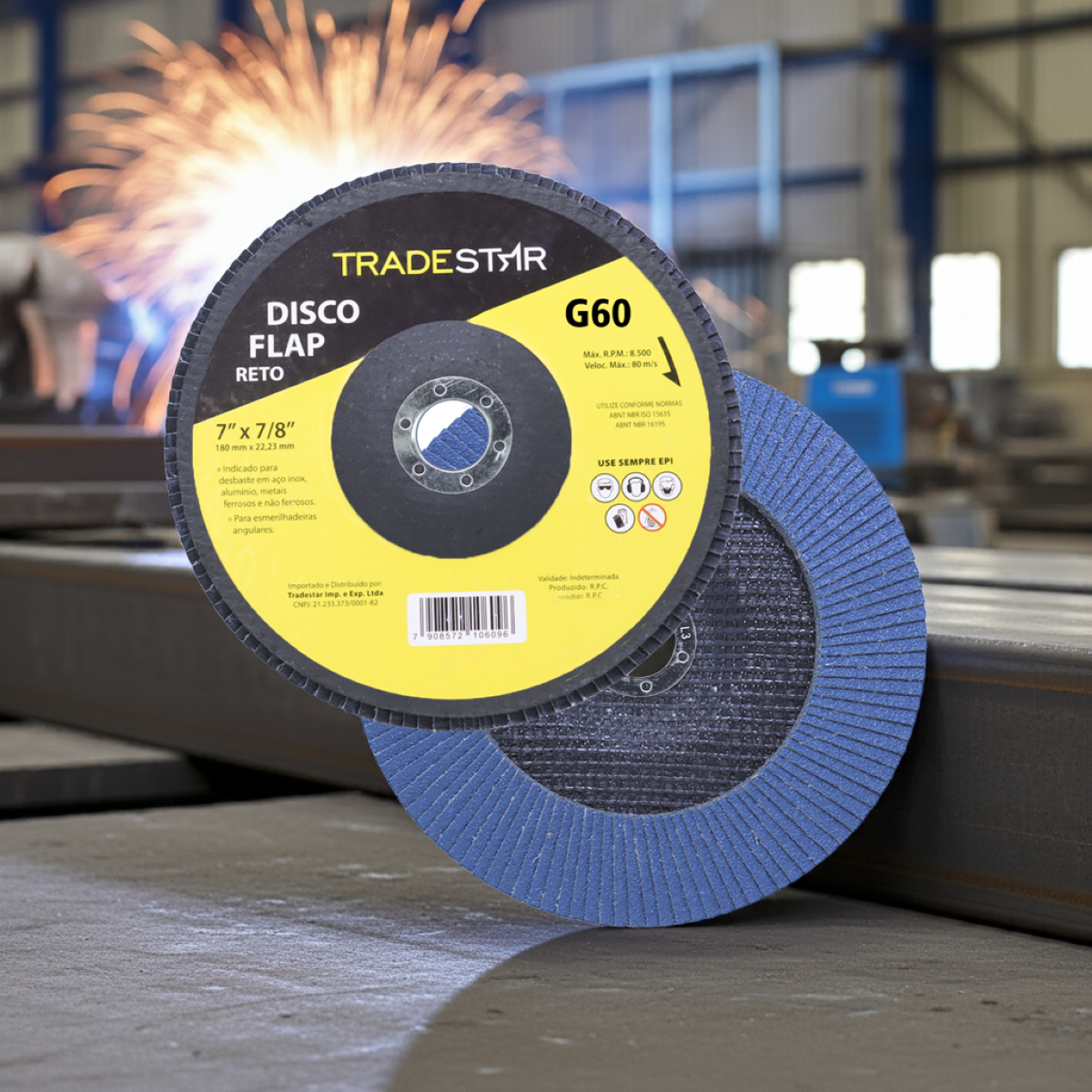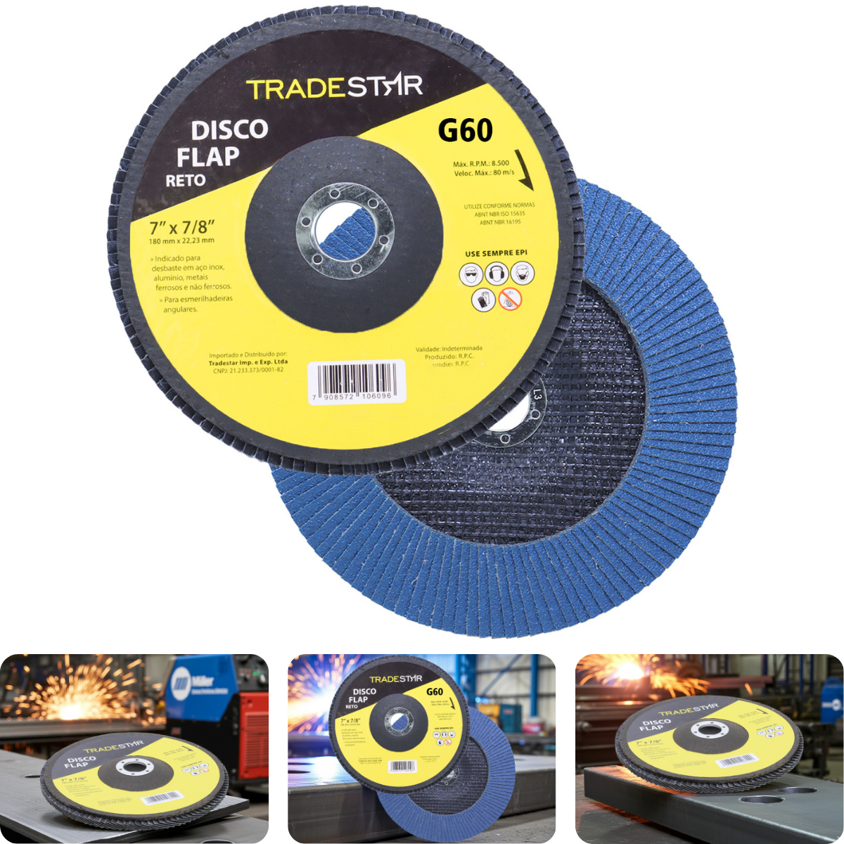 Seja no ambiente profissional ou em projetos pessoais, o Disco Flap Tradestar 180 mm G60 Fibra Reto Azul Aço e Inox é sinônimo de eficiência e acabamento de qualidade, representando uma excelente relação custo-benefício para quem busca ferramentas abrasivas confiáveis.