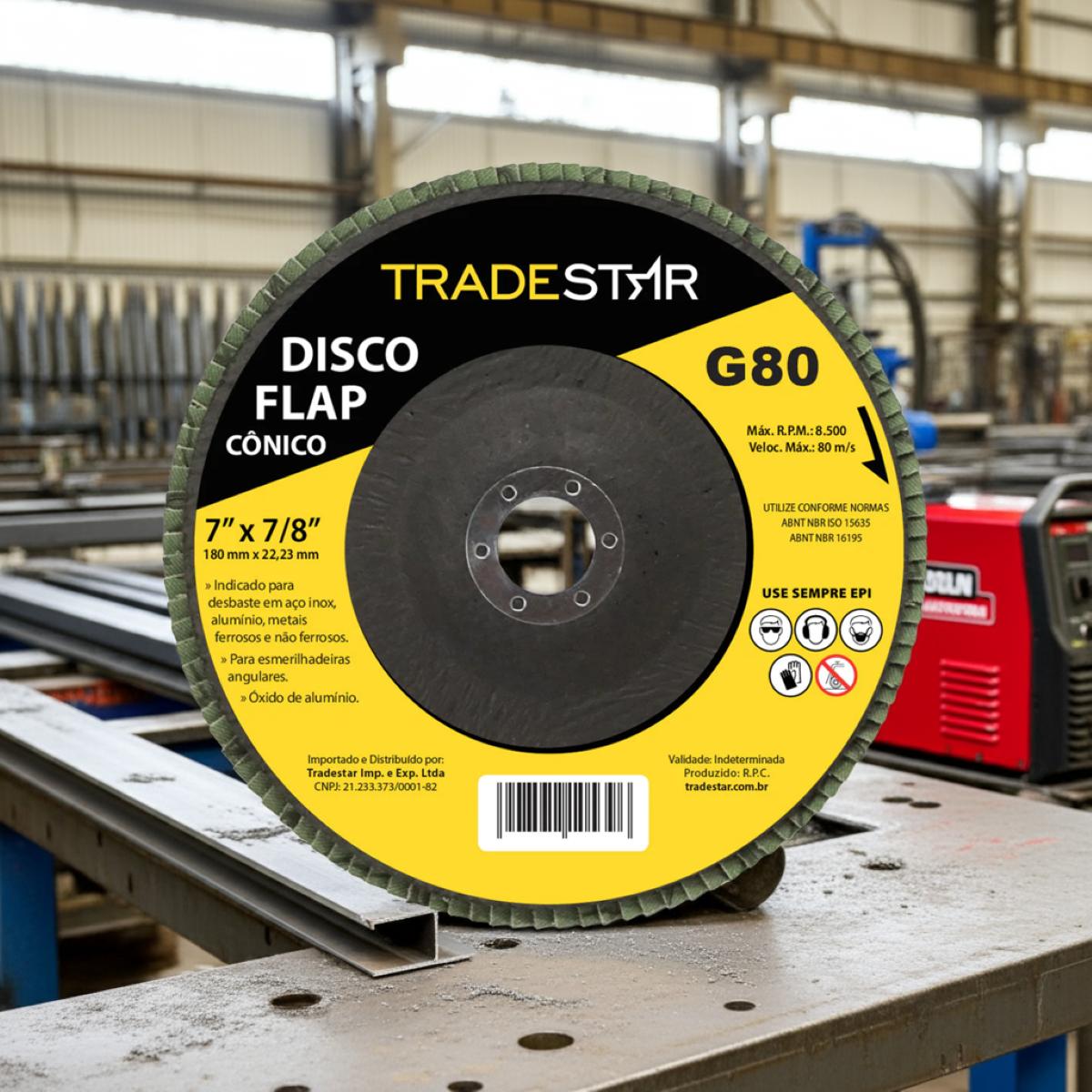 - 1 Flap Disc 180 mm G80 Fibra Conico Aço Tradestar