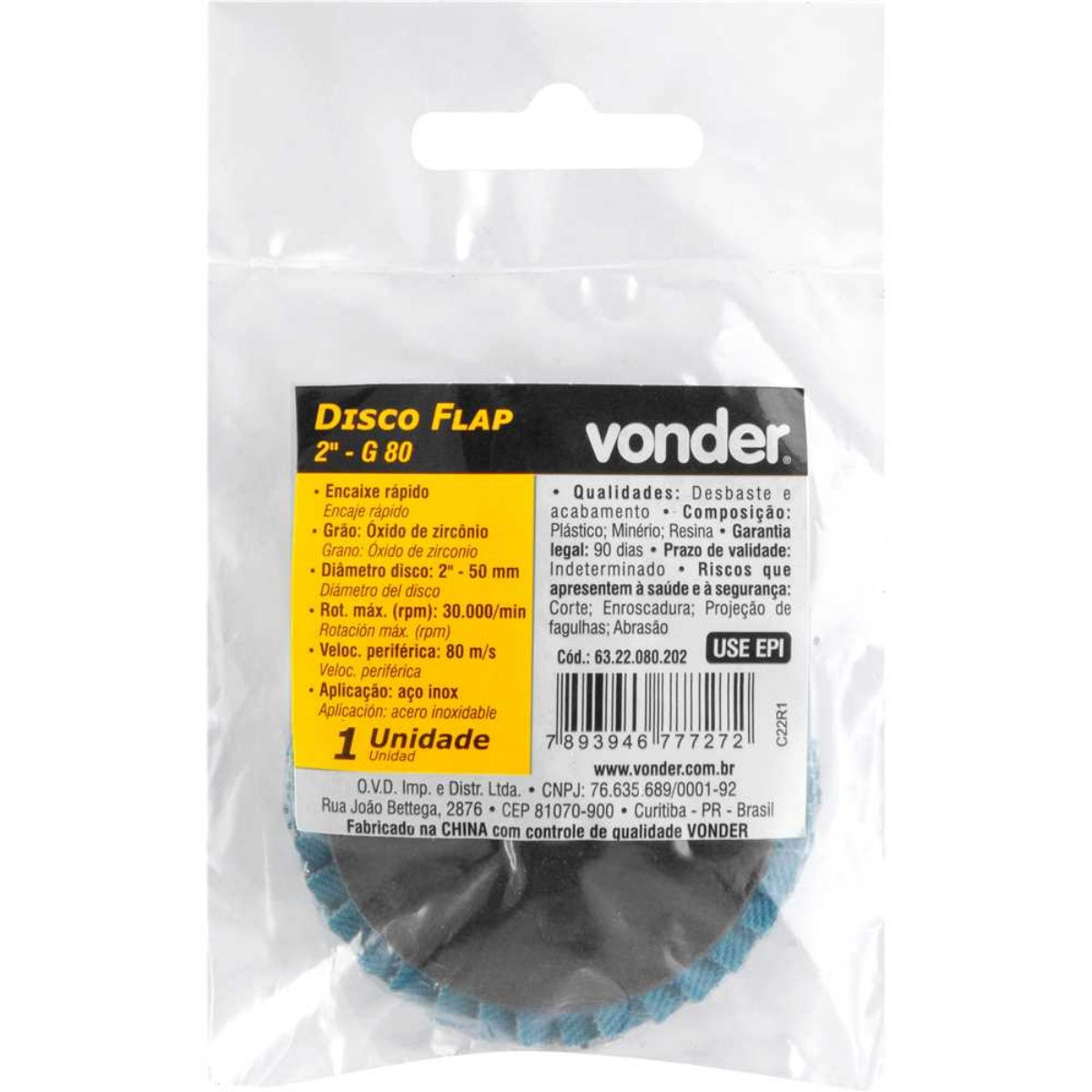 - 01 Disco Flap Reto 2" Grão 80 Zircônio Encaixe Rápido Vonder