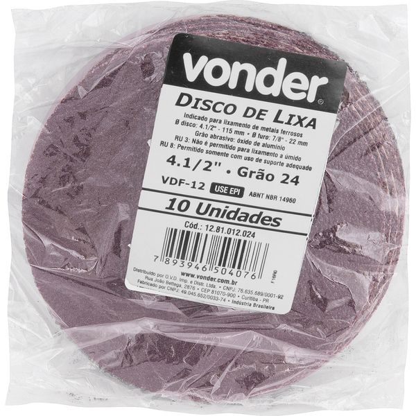 Disco lixa fibra 115mm g24 dvf12 10 peças Vonder