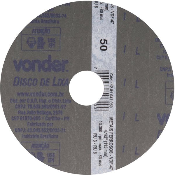 Disco lixa fibra 115mm g50 dvf47 10 peças Vonder