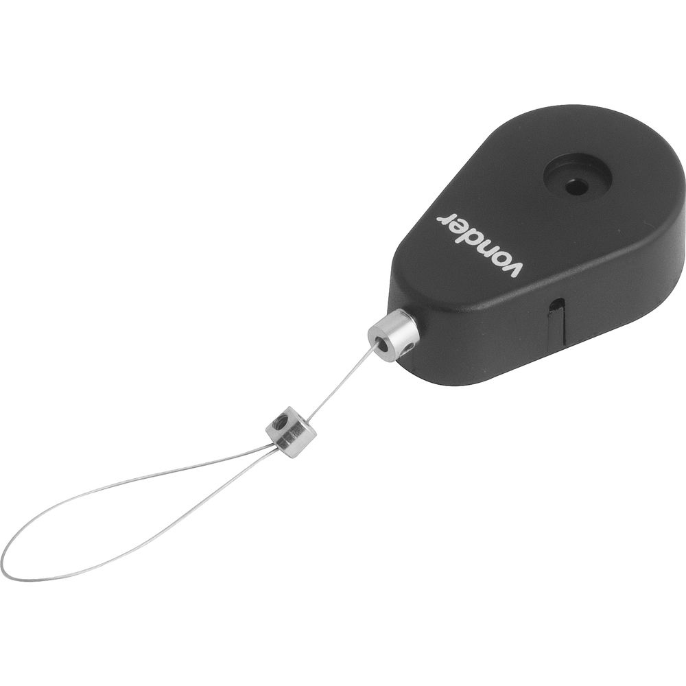 Possui mola retrátil, limitador do comprimento do cabo de aço e prensa cabo para facilitar a fixação