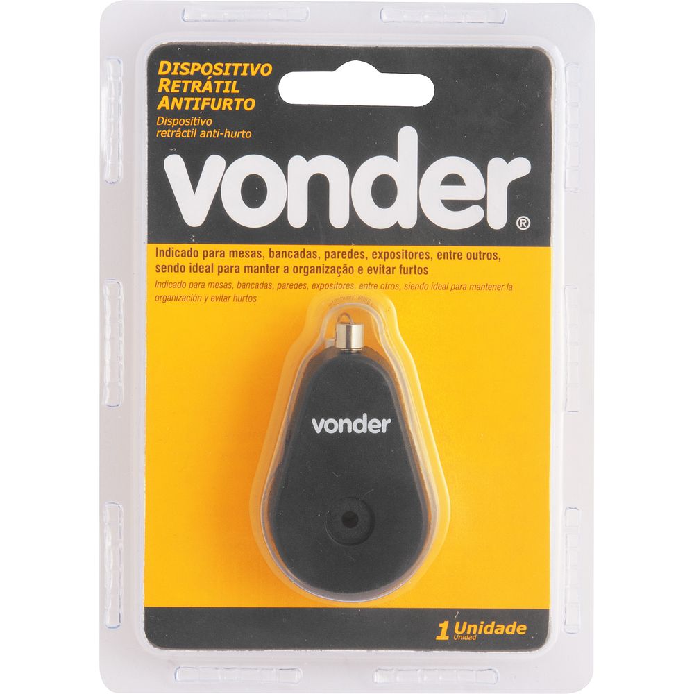 Indicado para mesas, bancadas, paredes, expositores, entre outros, sendo ideal para manter a organização e evitar furtos. Para melhor desempenho do antifurto VONDER, utilize parafuso ou prego para fixar o produto (não acompanha)Características Técnicas: