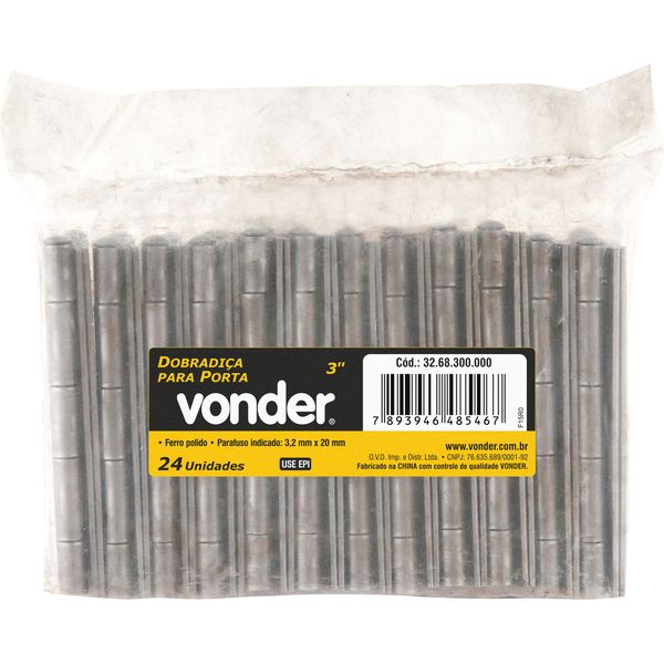 A dobradiça Vonder oferece durabilidade e resistência, sendo uma escolha confiável para quem busca qualidade. Seu acabamento polido garante um visual sofisticado, enquanto sua fácil instalação proporciona praticidade. Ideal para diversos tipos de portas e janelas, é uma solução versátil e eficiente para o seu projeto.