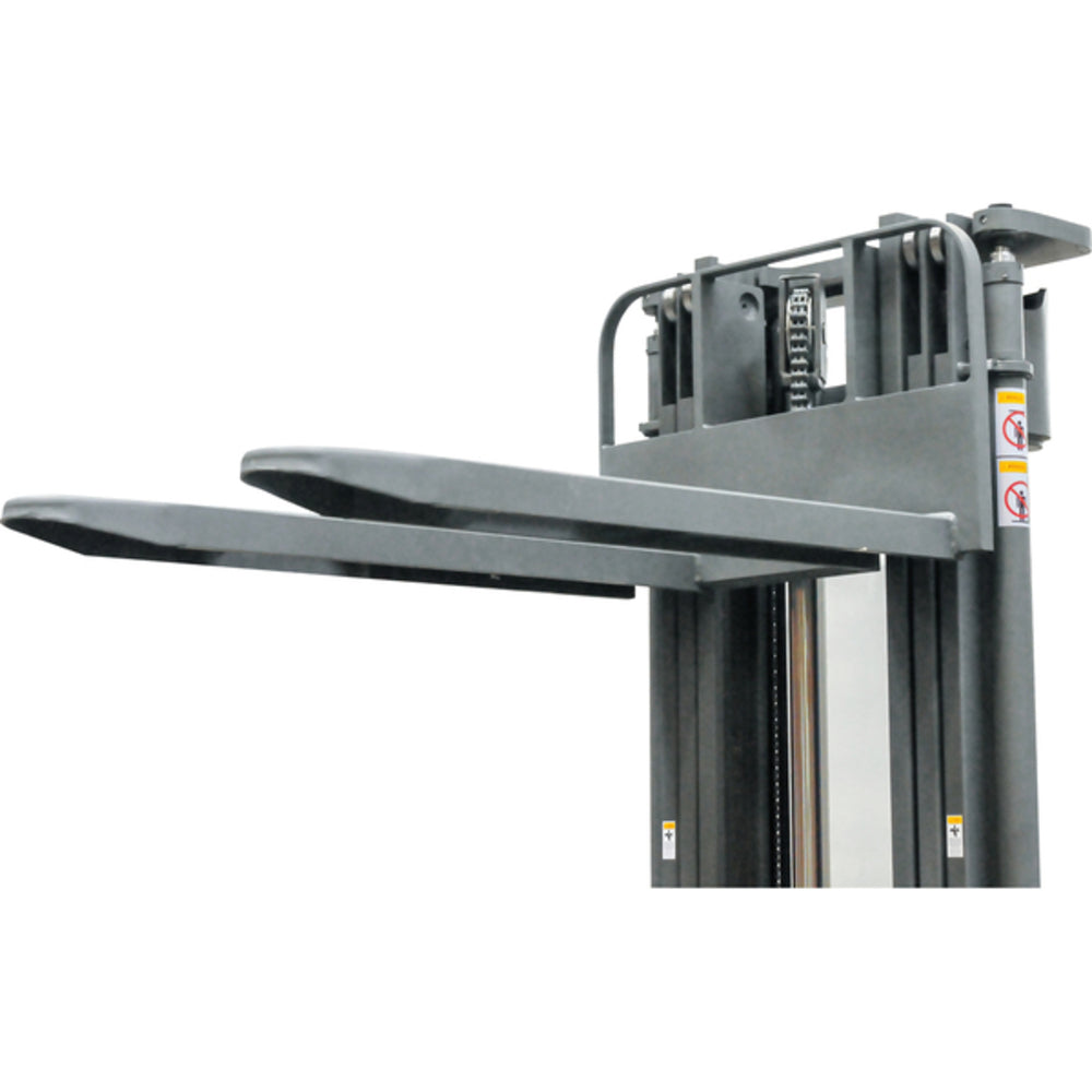 Equipamento com Softstart, ou seja, partida suave, evitando trancos ou arranques rápidos durante sua partida, proporcionando maior segurança ao operador e menor risco da carga desequilibrar, principalmente no trabalho com cargas frágeis. Seu controlador é CURTIS AC/DC, que confere altíssimo grau de confiança. Freio regenerativo de alta tecnologia, pois a energia produzida durante a desaceleração e frenagem, é direcionada à bateria. Este sistema, além de ser extremamente seguro, ainda proporciona um ganho de autonomia do equipamento, gerando menos paradas para carregamento. Motor de elevação DC - possui baixa manutenção. Timão ergonômico marca FREI, proporcionando maior conforto ao operador e menor índice de manutenção do equipamento. Possui motor de tração lateral, fazendo com que a roda de tração sempre esteja em contato com o piso mesmo que seja irregular. Torre com 3 estágios e ?free lift?, que facilita a locomoção em mezaninos mais baixos e até mesmo dentro de caminhões. Torre removível, o que facilita a manutenção e a entrega do equipamento em barracões/galpões com portas mais baixas. Possui transmissão vertical, conferindo maior proteção aos impactos principalmente nos trabalhos em docas. Sistema de rodas duplas no garfo, proporcionando maior estabilidade da carga em pisos irregulares, além de serem fabricadas em PU, conferindo maior durabilidade e menor ruído. Possui dispositivo que bloqueia a elevação quando a carga for maior do que a capacidade, oferecendo maior segurança ao operador e aumentando a vida útil do equipamento. Display multifuncional com horímetro, chave de emergência, indicador de bateria, opção lento, botão de emergência antiesmagamento e buzina. Roda de tração vertical que garante fácil manutenção e pequeno raio de giro. Possui tecnologia CANbus, que reduz a complexidade da fiação elétrica, aumentando a confiabilidade e facilitando a operação de manutenção.