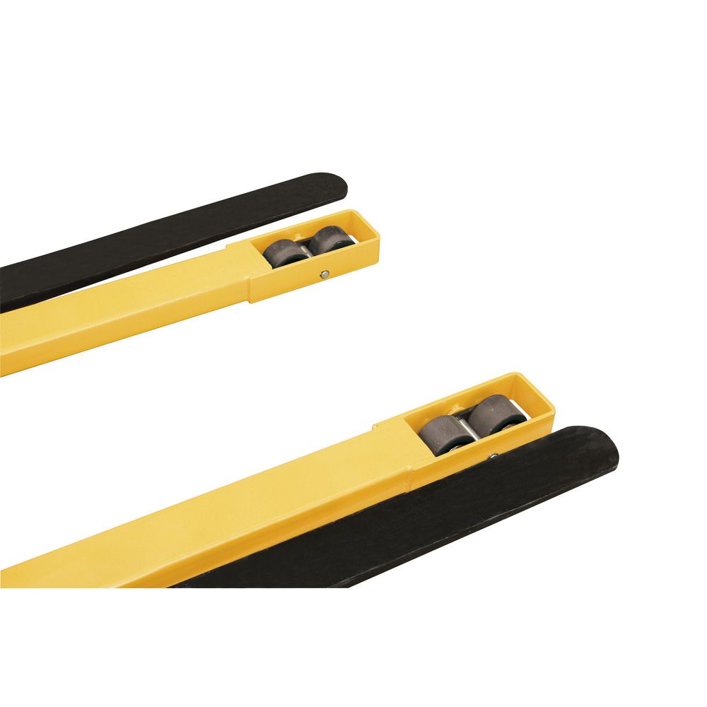 Possui pintura eletrostática a pó, proporcionando maior durabilidade e resistência. Conta com alças que facilitam a movimentação, grade inteiriça que protege o operador de um possível desequilíbrio da carga, rodas duplas nos garfos que garantem maior estabilidade da carga, além de freio/trava nas rodas de direção. Seu principal diferencial é o garfo ajustável, que possibilita o trabalho com paletes de diferentes medidas, reforçado e especialmente projetado, garantindo maior desempenho, resistência e segurança na operação.