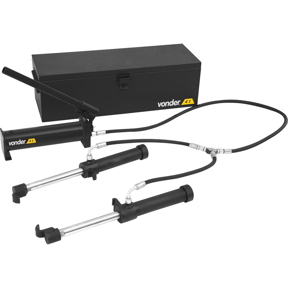 Indicado para veículos leves (não atende caminhonetes e vans). Abertura: mínima 120 mm/máxima 290 mm | comprimento total do encolhedor: mínimo 379 mm/máximo 549 mm | comprimento da mangueira: 1 com 1,5 m e 2 com 50 cm com rosca 9/16" UNF fêmea.