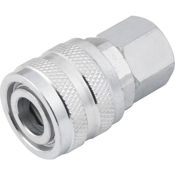 Medida da rosca do engate rápido para mangueira de ar: 0.1/4 " Tipo da rosca do engate rápido: NPT fêmea Material do engate rápido para mangueira de ar: Aço carbono Acabamento do engate rápido para mangueira de ar: Zincado Tipo do engate rápido para mangueira de ar: Com rolete Medida do encaixe do engate rápido: 0.1/4 "