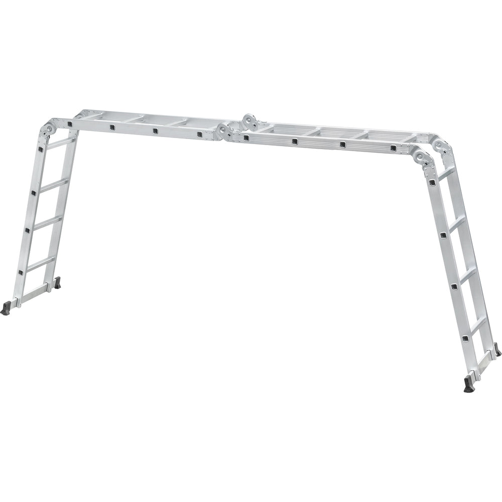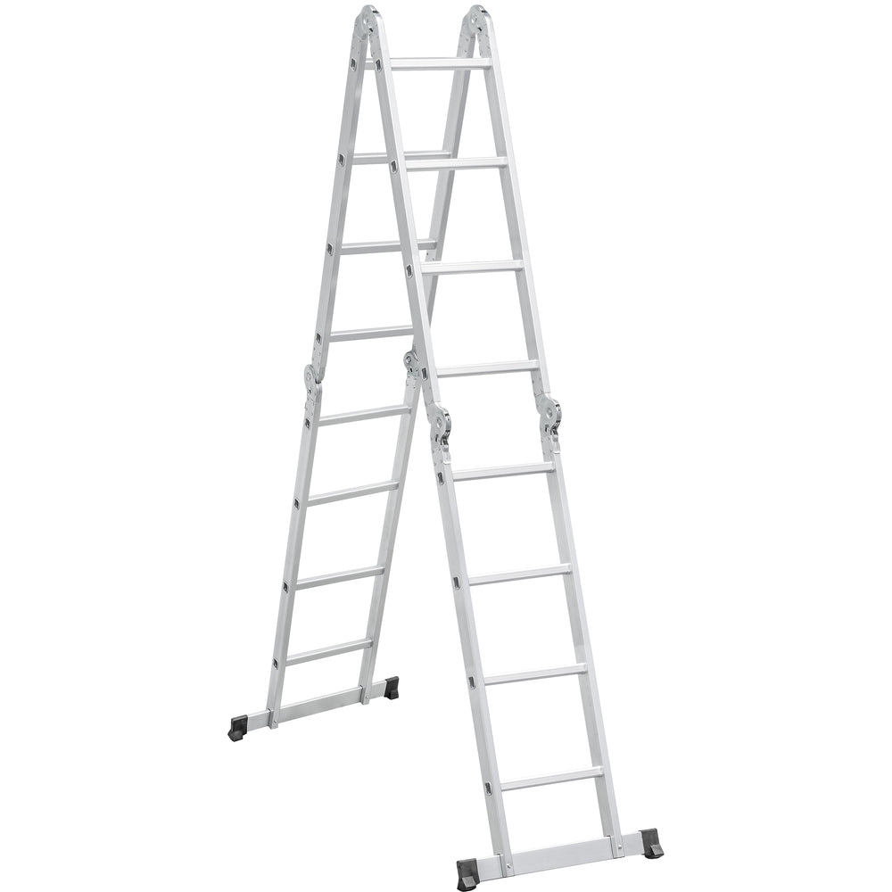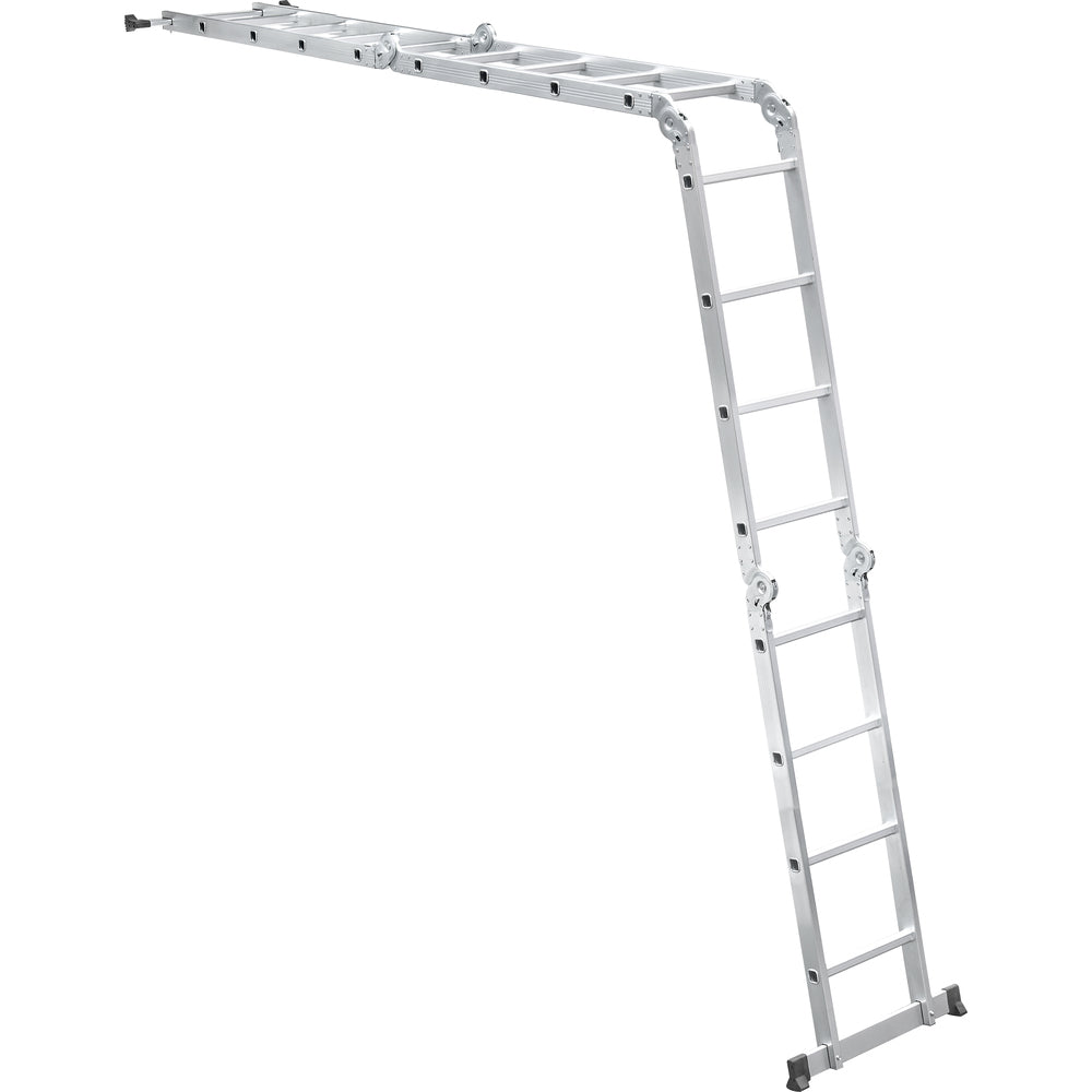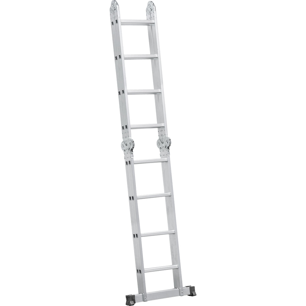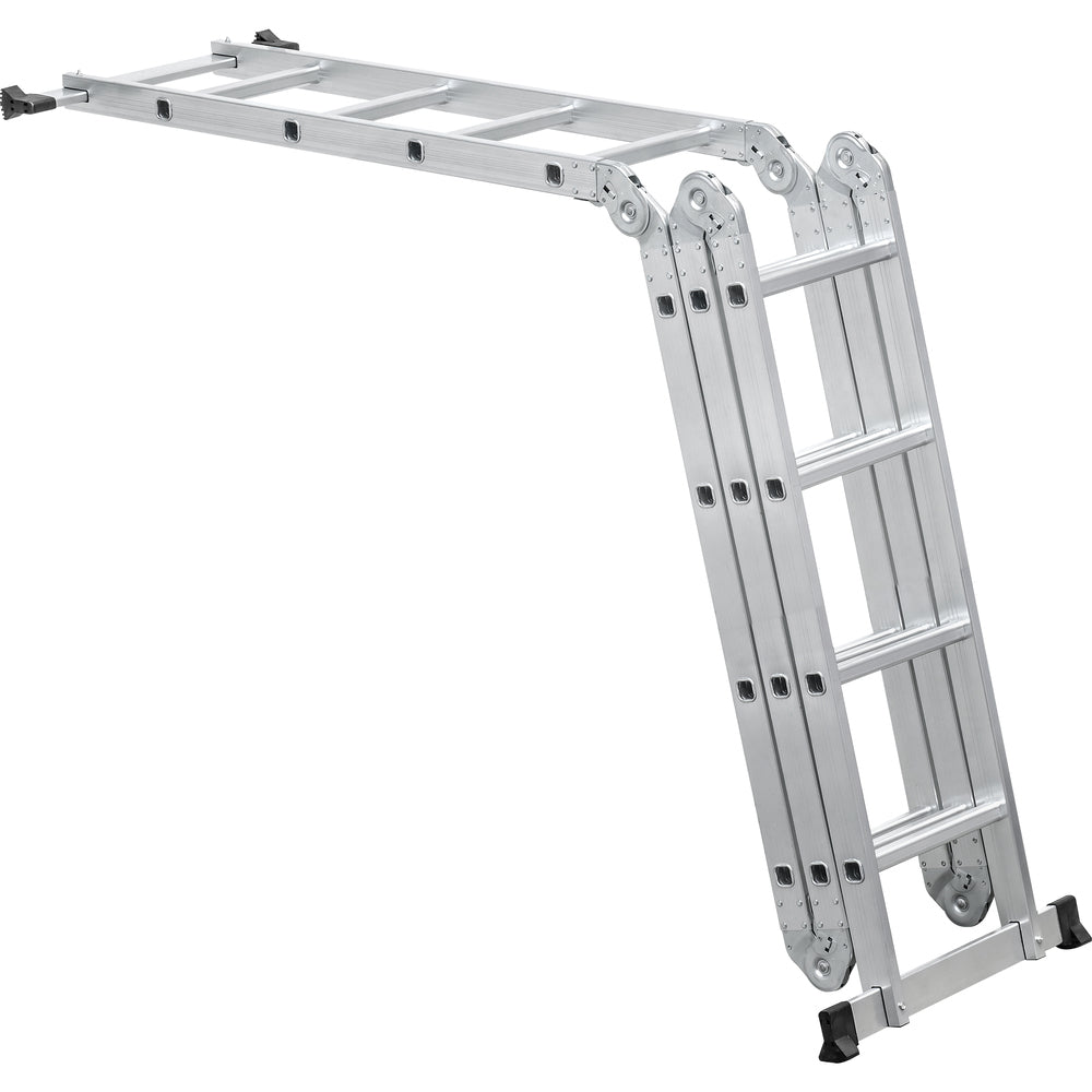 Permite o ajuste em várias posições, com sistema de articulação dividido em 4 partes com 4 degraus cada, totalizando 16 degraus. Possui sistema de trava em cada parte e sapatas antiderrapantes.