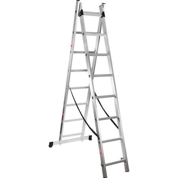 Fabricada em alumínio, proporcionando maior durabilidade. Possui sapatas antiderrapantes para maior segurança. Permite a utilização na forma fechada e estendida.