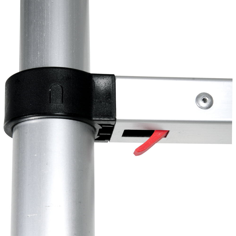 Possui estrutura toda em alumínio e travas de proteção do sistema de antiesmagamento (amortecedor) que ampliam a segurança do operador. Leve e fácil de transportar, também é prática para armazenar, podendo ser guardada em pequenos espaços.