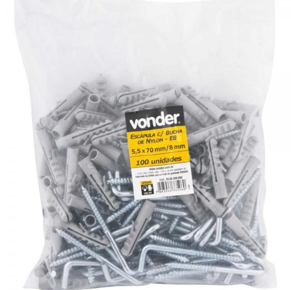 Escapula 5,5x70mm zincado c/ bucha 8mm c/ 100 pç e-8 Vonder