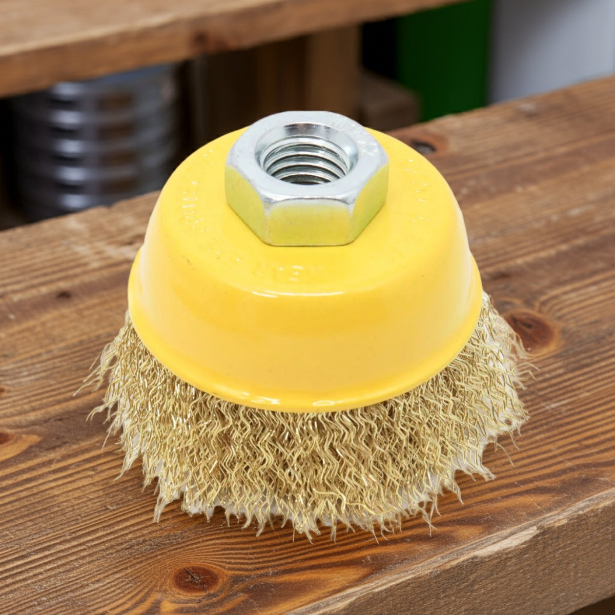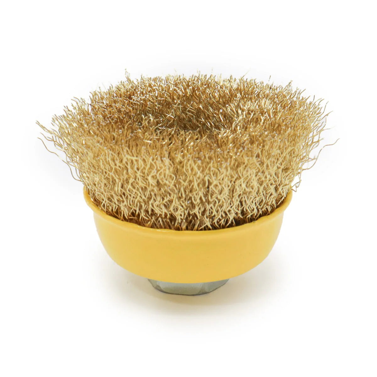 - 1 Escova Copo 2.1/2" Aço Latonado Ondulado Rosca M14 Tradestar
