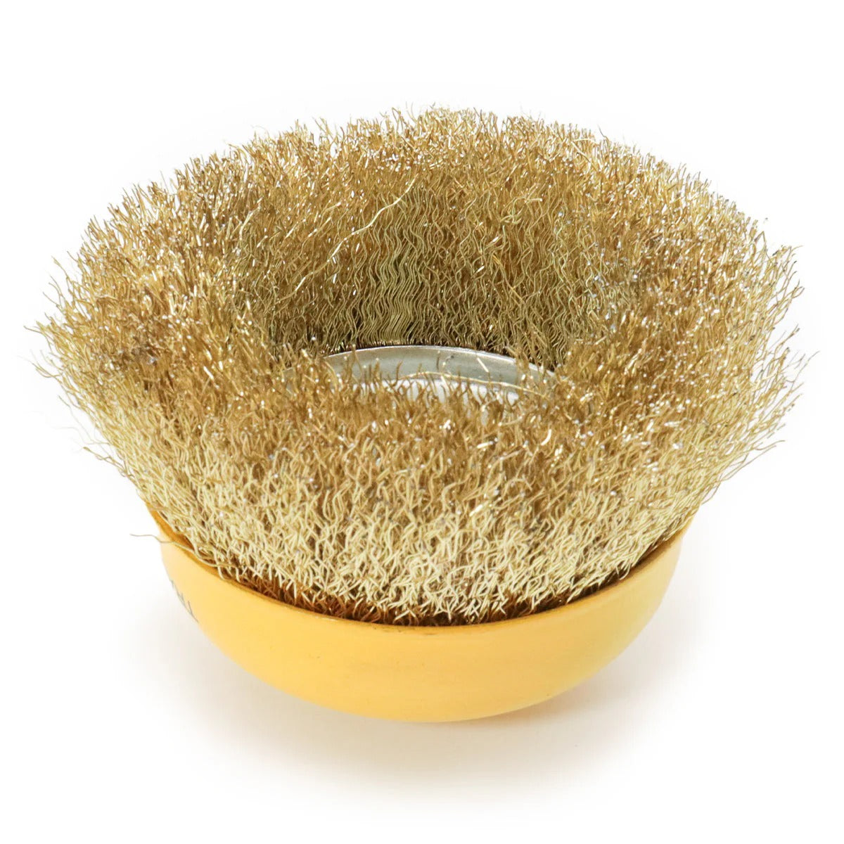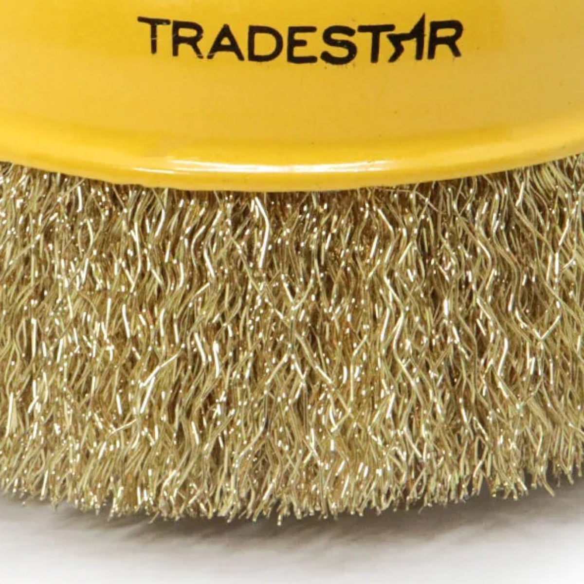 - 1 Escova Copo 4" Aço Latonado Ondulado Rosca M14 Tradestar