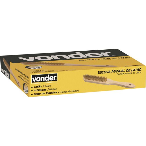 Material/acabamento das cerdas da escova: Latão Material do cabo da escova: Madeira Material da base da escova: Madeira Número de fileiras de cerdas da escova: 4 fileiras