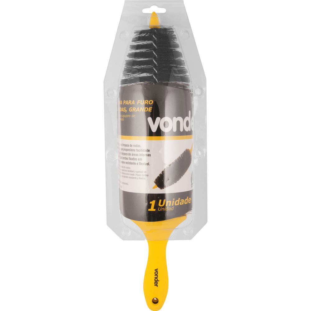 Tem formato que proporciona facilidade e agilidade na limpeza de áreas internas da roda. Possui cerdas fixadas em estrutura de arame resistente e flexível.