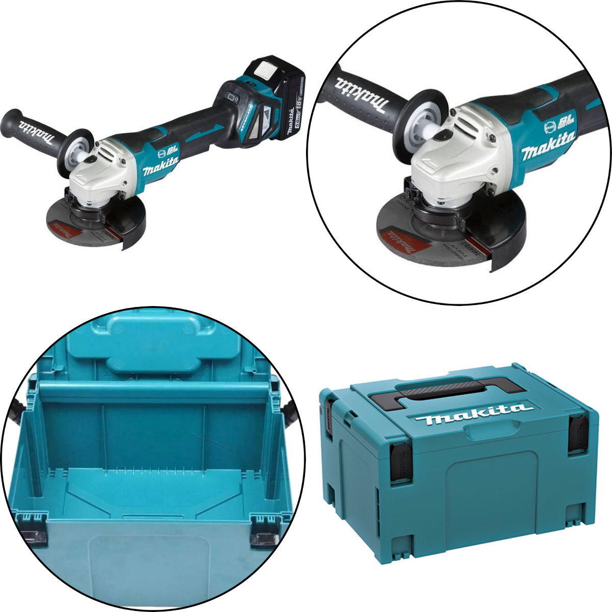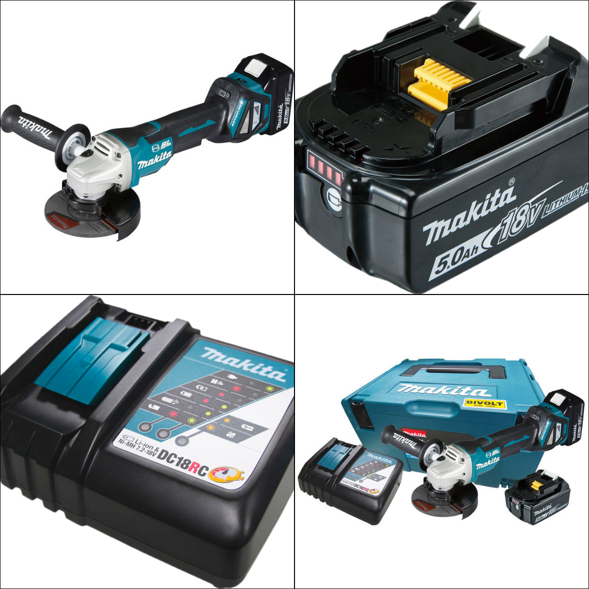 Conteúdo da embalagem: 1 Esmerilhadeira Angular 125Mm Sem Fio 18V Com 2 Baterias Carregador Maleta Disco DGA518RTJ Makita