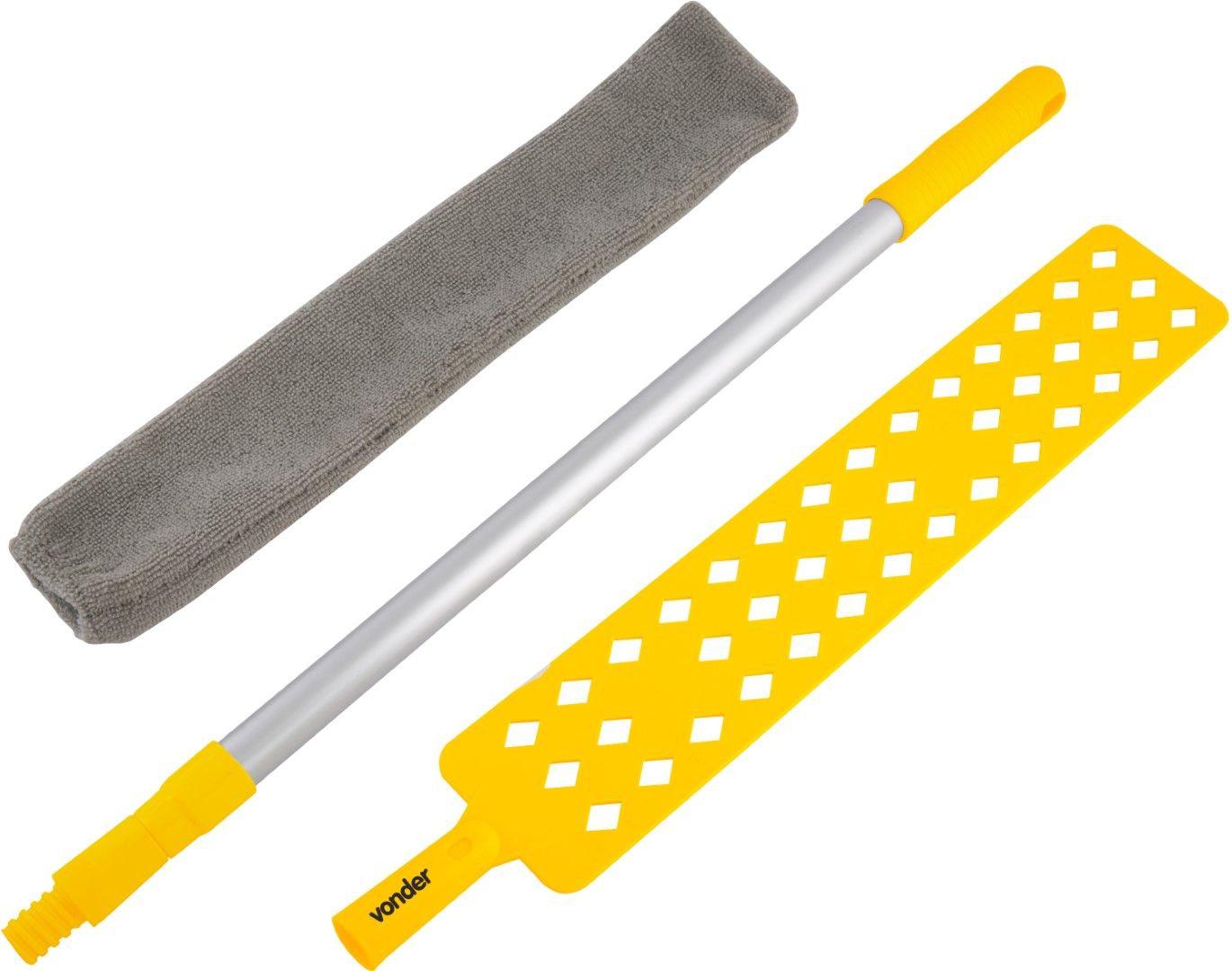 Conteúdo da embalagem: 1 Espanador. Acompanha: 1 refil de microfibra perfil baixo e 1 refil de microfibra perfil alto.