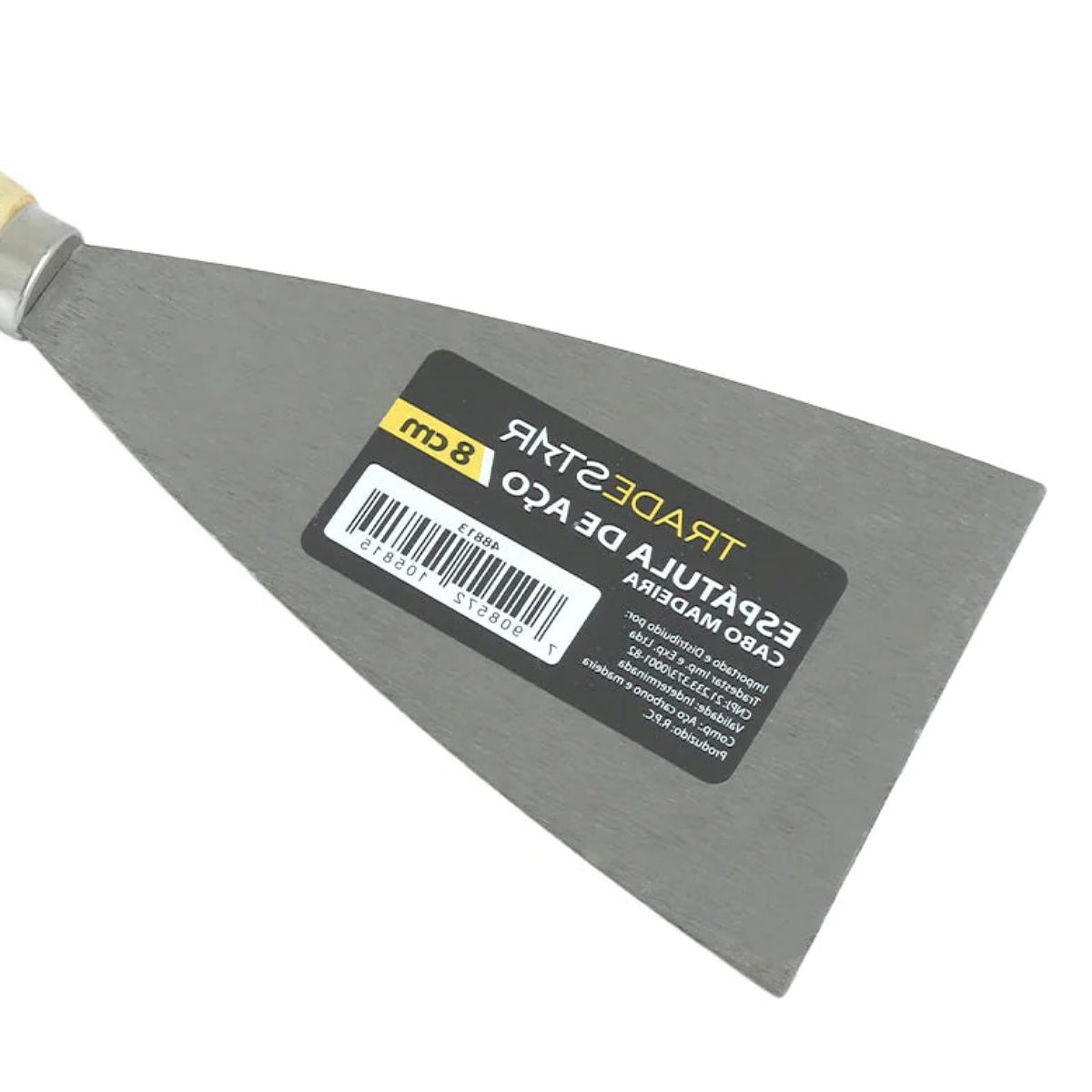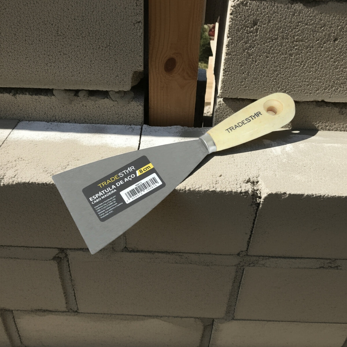 Com lâmina de 10 cm de largura, a espátula oferece o tamanho ideal para áreas menores e detalhes, permitindo maior controle no manuseio e acabamento mais uniforme. O cabo de madeira ergonômico garante firmeza e conforto, reduzindo a fadiga durante o uso prolongado e assegurando maior segurança ao operador.
