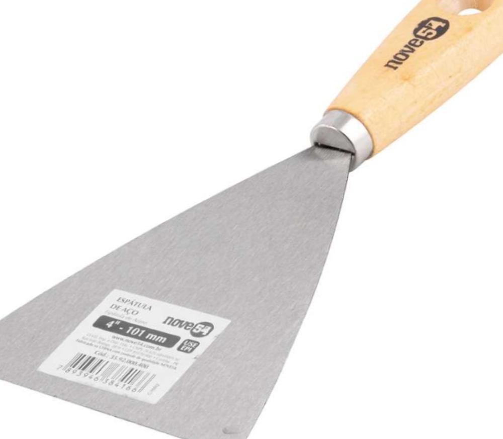 Largura da lâmina da espátula: 4" - 101 mm Material da lâmina da espátula: Aço laminado Material do cabo da espátula: Madeira Perfil de raspagem da espátula: Liso