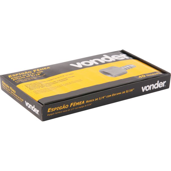 Medida da rosca do espigão para mangueira: 0.1/4 " Tipo da rosca do espigão para mangueira: NPT - Fêmea Medida da escama do espigão para mangueira: 0.5/16 " Material do espigão para mangueira: Aço zincado