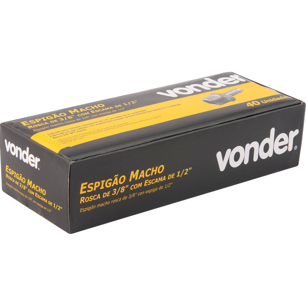 Medida da rosca do espigão para mangueira: 0.3/8 " Tipo da rosca do espigão para mangueira: NPT - Macho Medida da escama do espigão para mangueira: 0.1/2 " Material do espigão para mangueira: Aço zincado