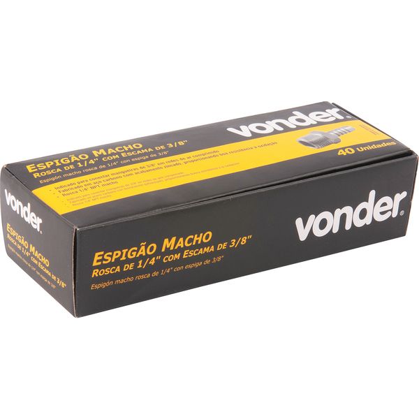 Medida da rosca do espigão para mangueira: 0.1/4 " Tipo da rosca do espigão para mangueira: NPT - Macho Medida da escama do espigão para mangueira: 0.3/8 " Material do espigão para mangueira: Aço zincado