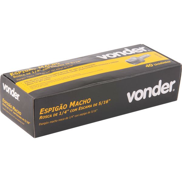 Medida da rosca do espigão para mangueira: 0.1/4 " Tipo da rosca do espigão para mangueira: NPT - Macho Medida da escama do espigão para mangueira: 0.5/16 " Material do espigão para mangueira: Aço zincado